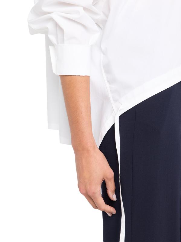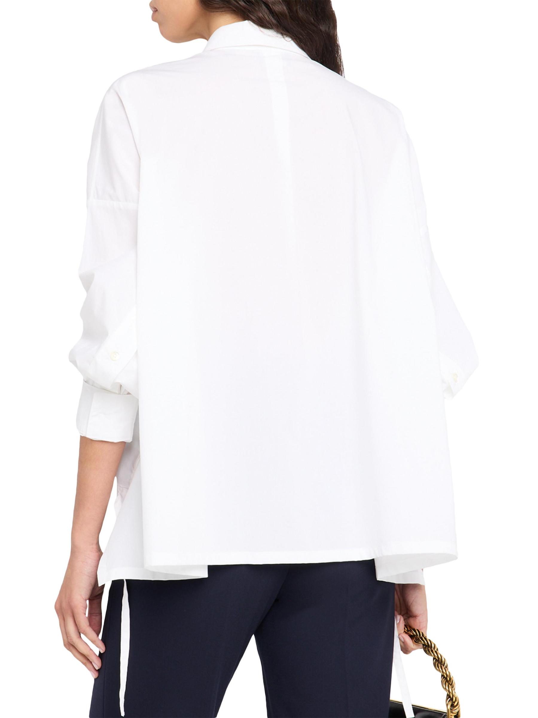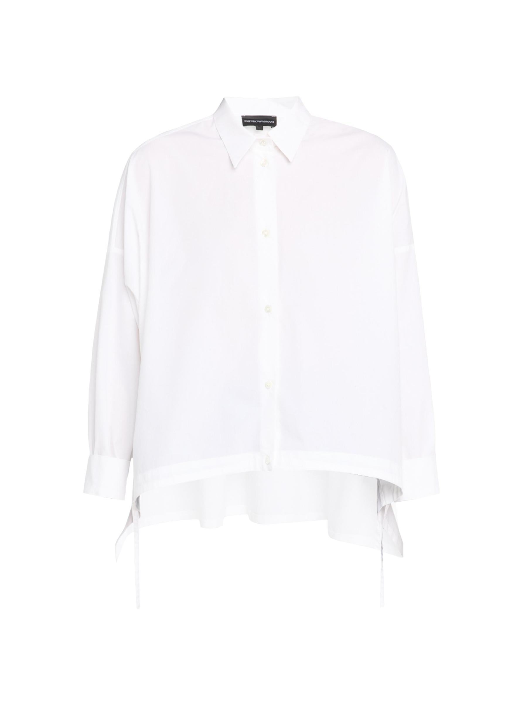 يتميز هذا القميص المصنوع من قماش البوبلين القطني من Emporio Armani، والذي تم تصميمه بقصة كبيرة، بحاشية عالية ومنخفضة مع تفاصيل ربطة العنق.