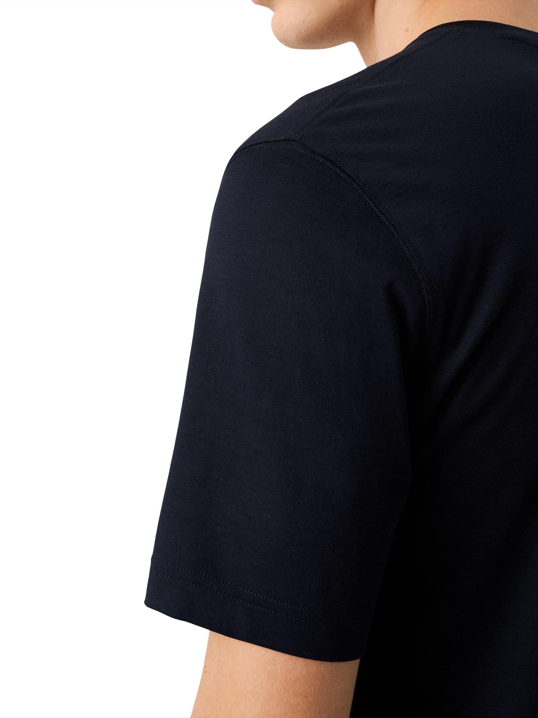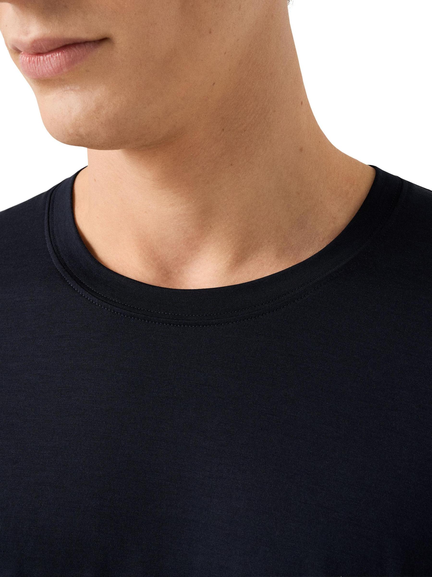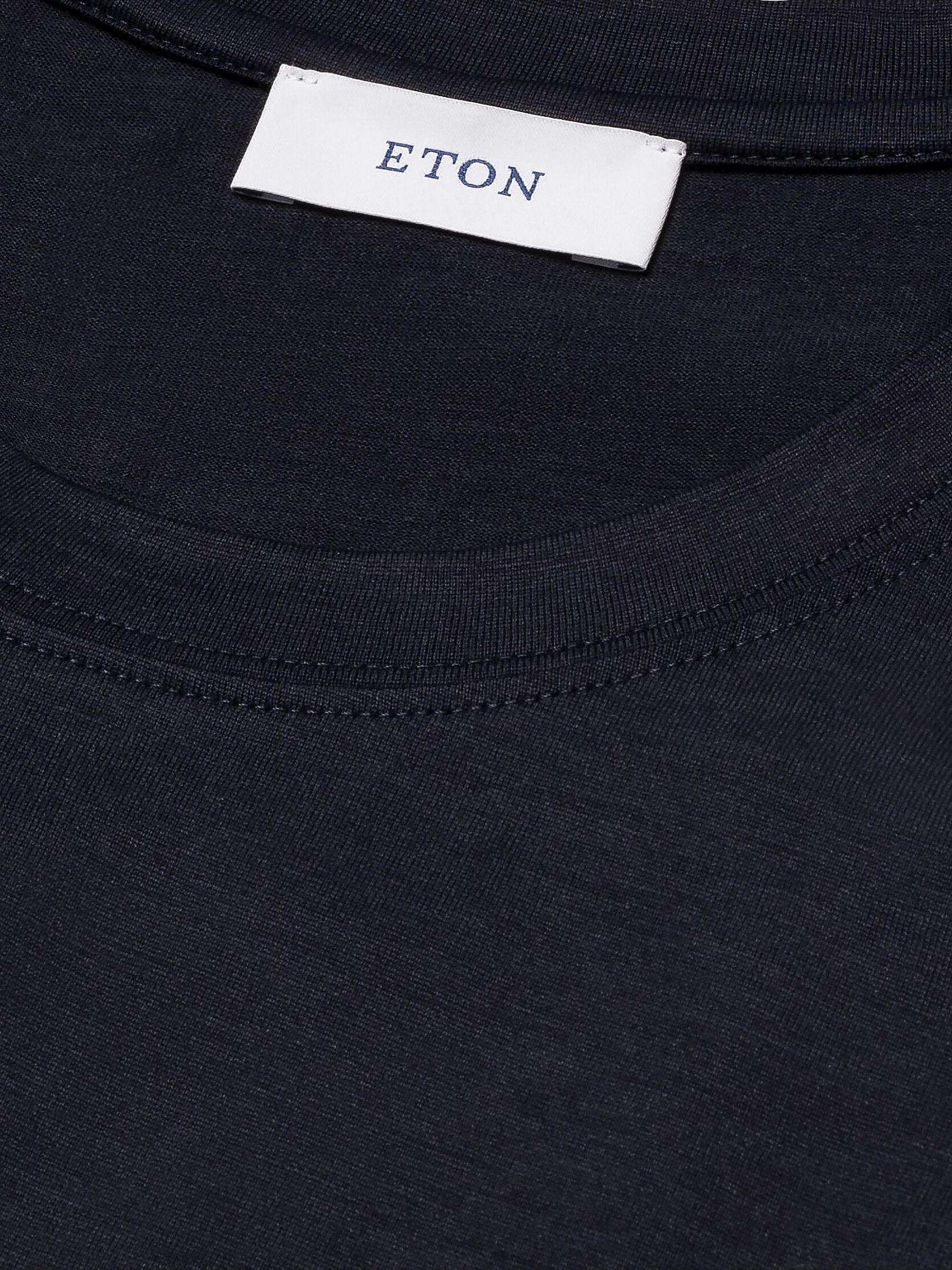 تيشيرت إيتون هذا ذو الرقبة المستديرة، المصنوع من مزيج فاخر من الحرير والقطن، يتميز بلمسة نهائية ناعمة ولامعة مع ستارة أنيقة.