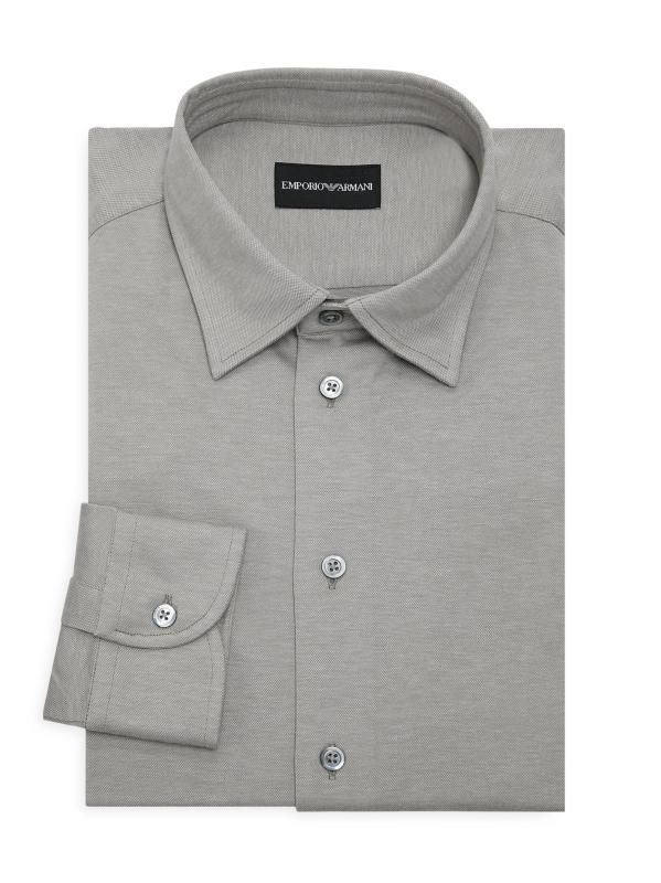 صُمم هذا القميص الرياضي من إمبوريو أرماني المصنوع من القطن البيكيه بياقة واسعة وأكمام طويلة وأساور أسطوانية بأزرار وإغلاق أنيق بأزرار أمامية.طوق سبريد أكمام طويلة وأساور أسطوانية بأزرار إغلاق بأزرار أمامية قطن بنسبة 100% تنظيف جاف مستوردة