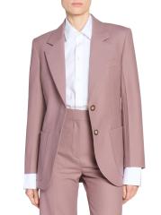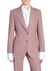 تم تصميم جاكيت فيكتوريا بيكهام القطني بتصميم منظم وحيد الصدر.