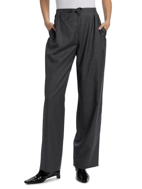 تم تصميم هذا البنطال ذو الطيات الأمامية من Loulou de Saison المصنوع من الصوف البكر مع حزام خصر برباط وجيوب جانبية.