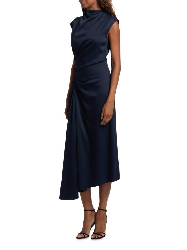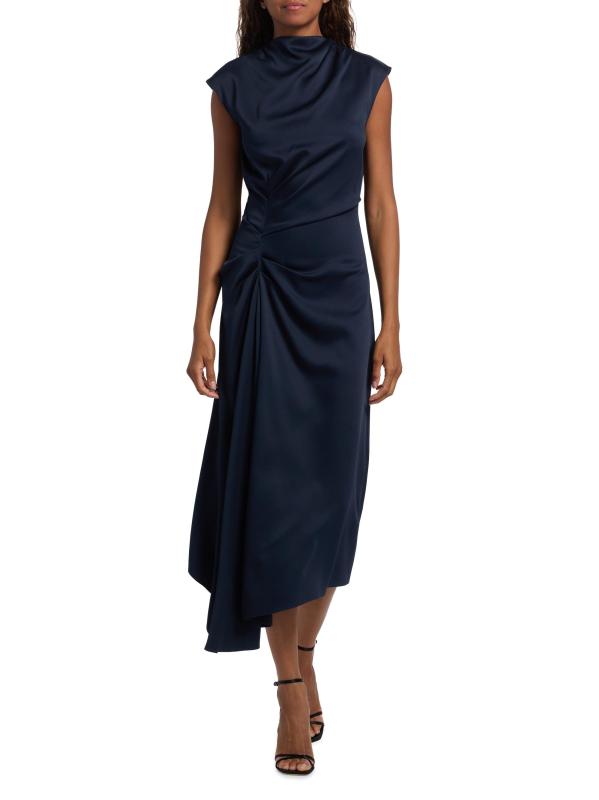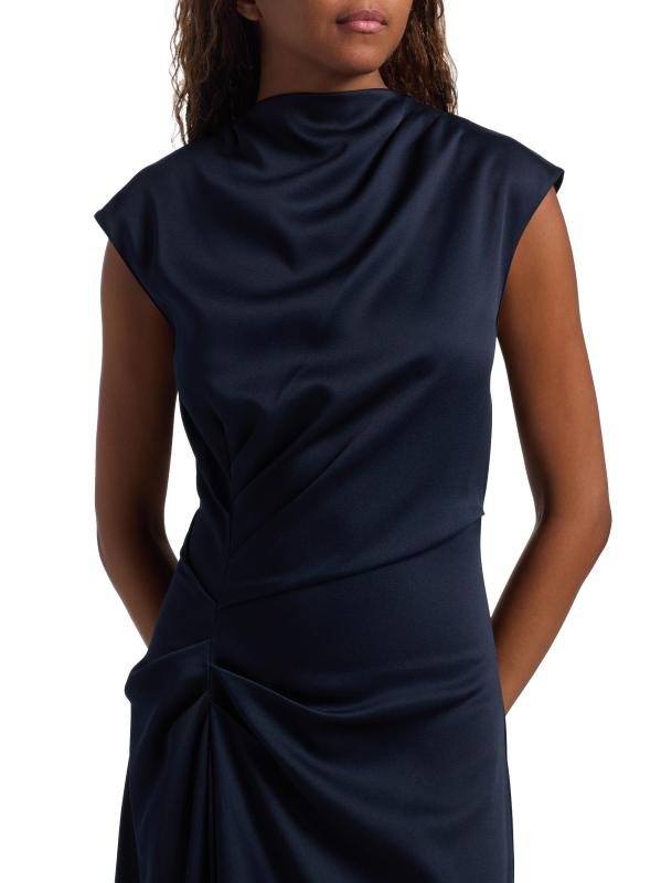 صُنع هذا الفستان المتوسط المصنوع من الساتان بلا أكمام في إيطاليا من مجموعة مايكل كورس، ويتميز بتقويرة على شكل قلنسوة وتفاصيل أمامية منسدلة.