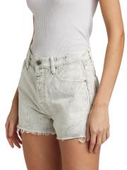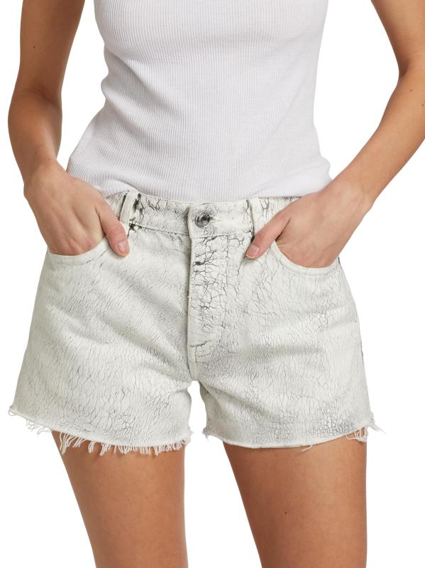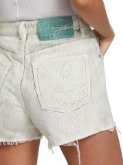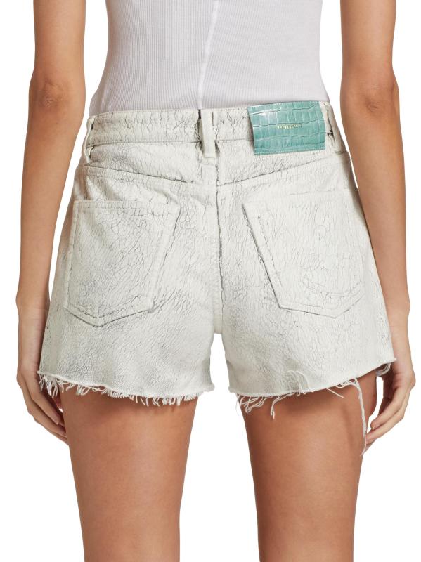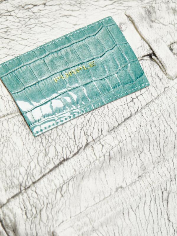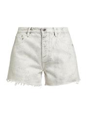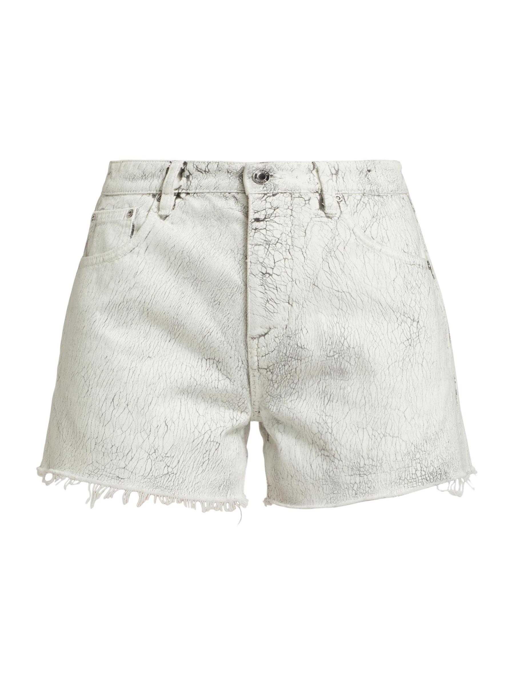 تتميّز شورتات الدنيم من ماركة بيربل براند، المُصممة بخصر مرتفع، بطبعة متشقّقة وحواف مهترئة. تصميم بخمسة جيوب يكمل هذا الزوج.