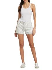 تتميّز شورتات الدنيم من ماركة بيربل براند، المُصممة بخصر مرتفع، بطبعة متشقّقة وحواف مهترئة. تصميم بخمسة جيوب يكمل هذا الزوج.حلقات الحزام طراز بخمسة جيوب سحّاب، زر للإغلاق قطن بنسبة 100% تنظيف البقع مستوردة