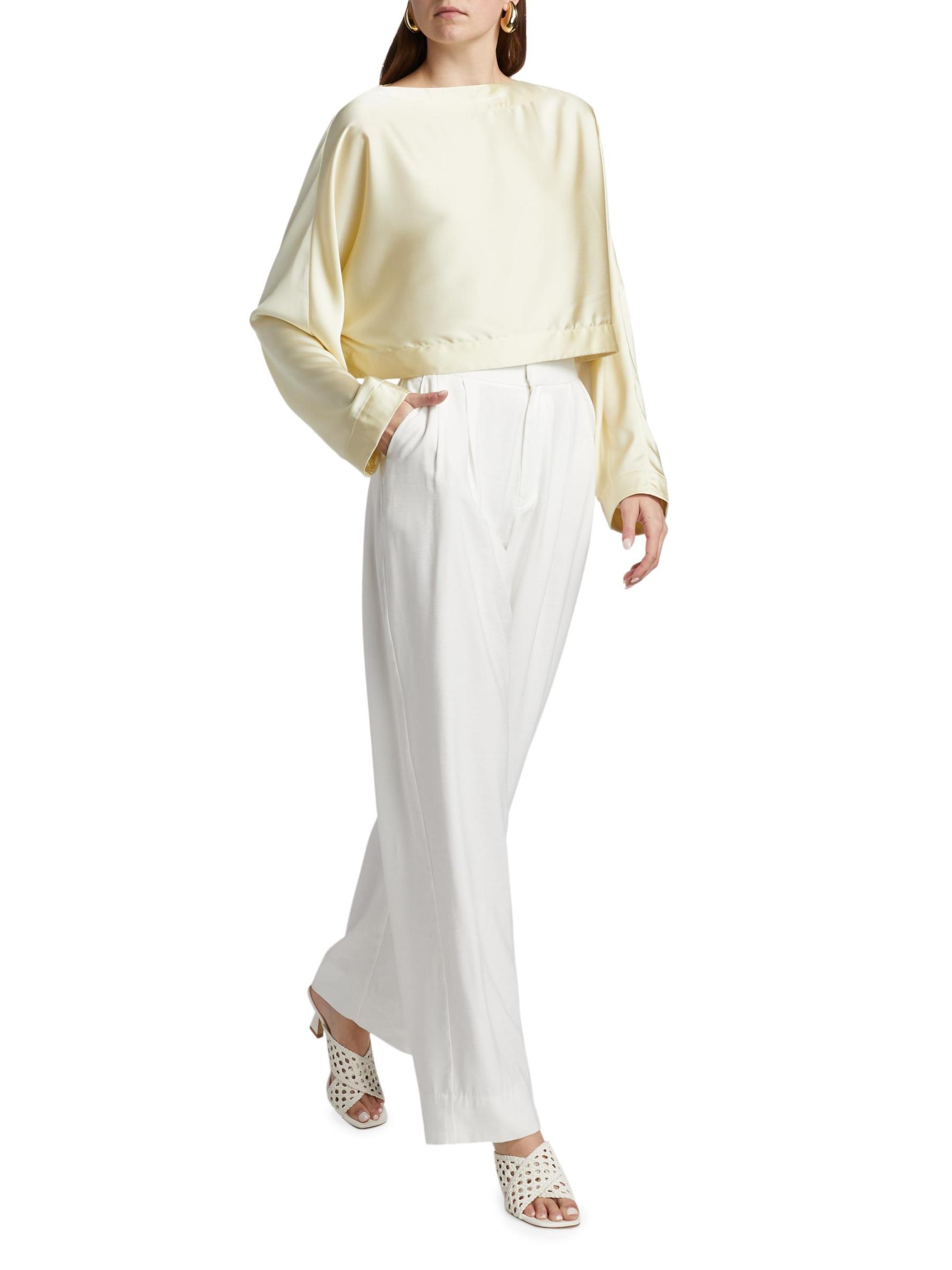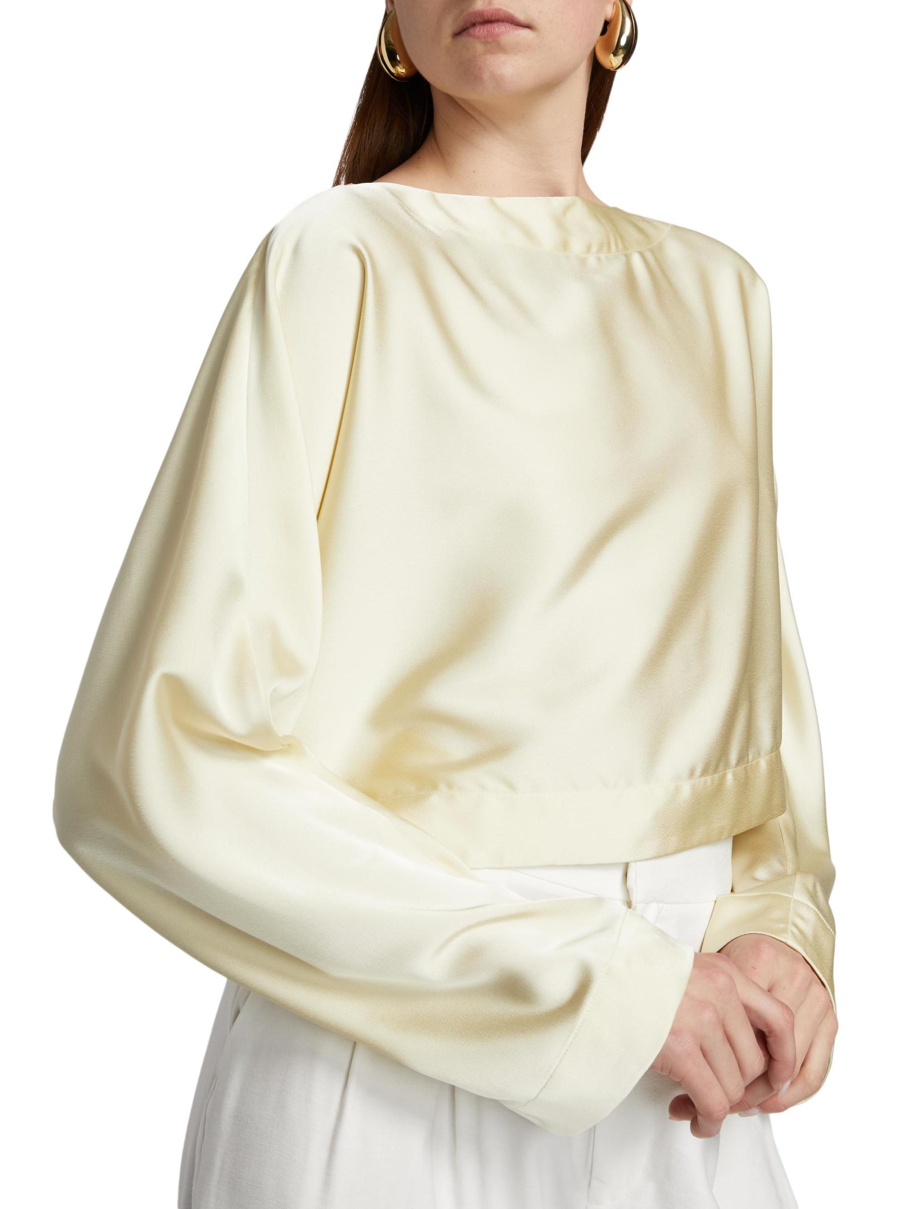بلوزة كريستيانا المصنوعة من الساتان من Nonchalant Label مصممة برقبة قارب وأكمام طويلة.
