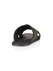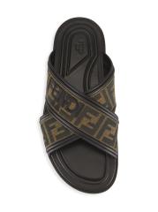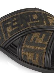 يتميز هذا الصندل بتصميم حزام متقاطع مزين بشعار FF من Fendi وشعار مغاير وبطانة جلدية ناعمة ونعل مطاطي.