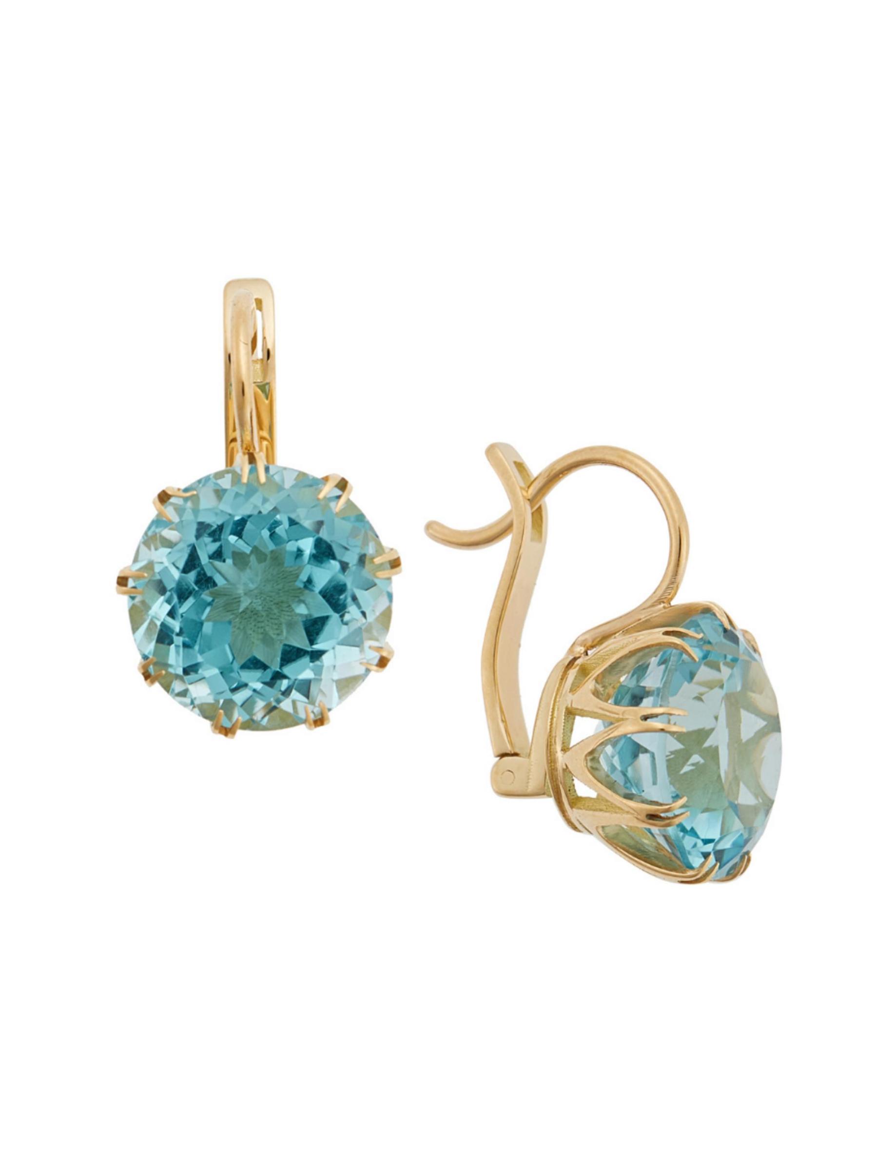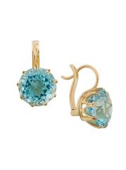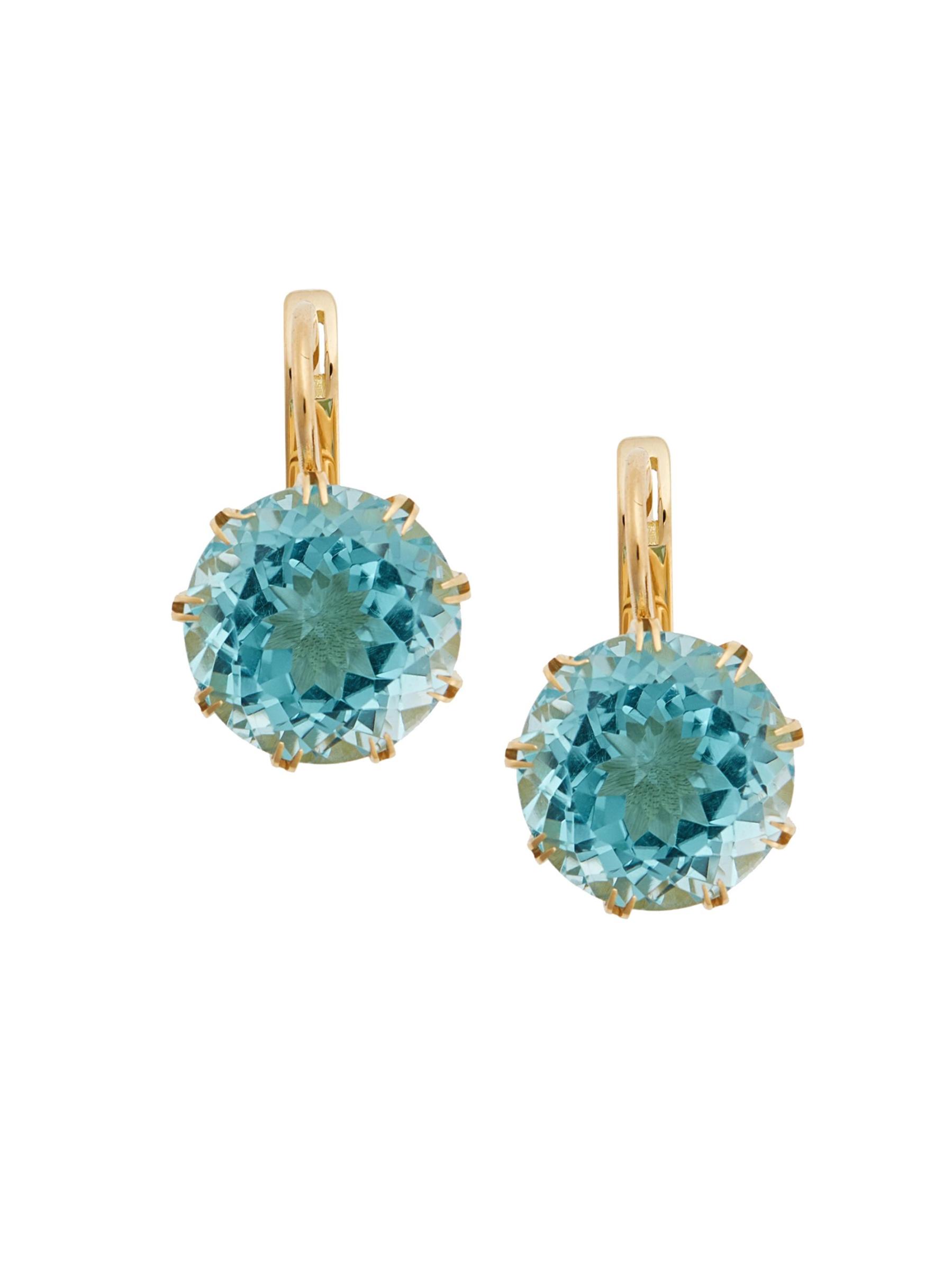 أقراط كراون من الذهب الأصفر عيار 18 قيراطًا والتوباز الأزرق