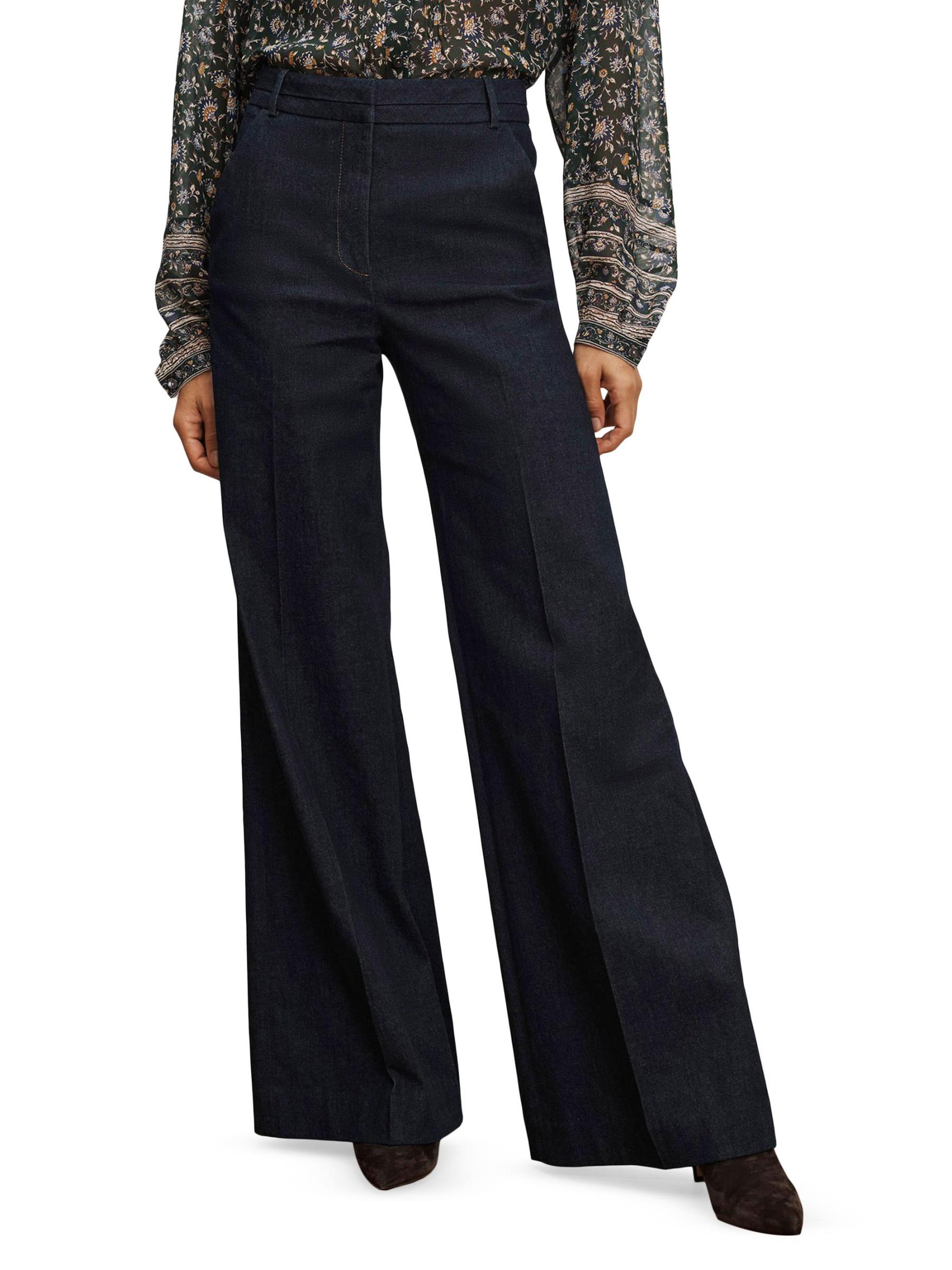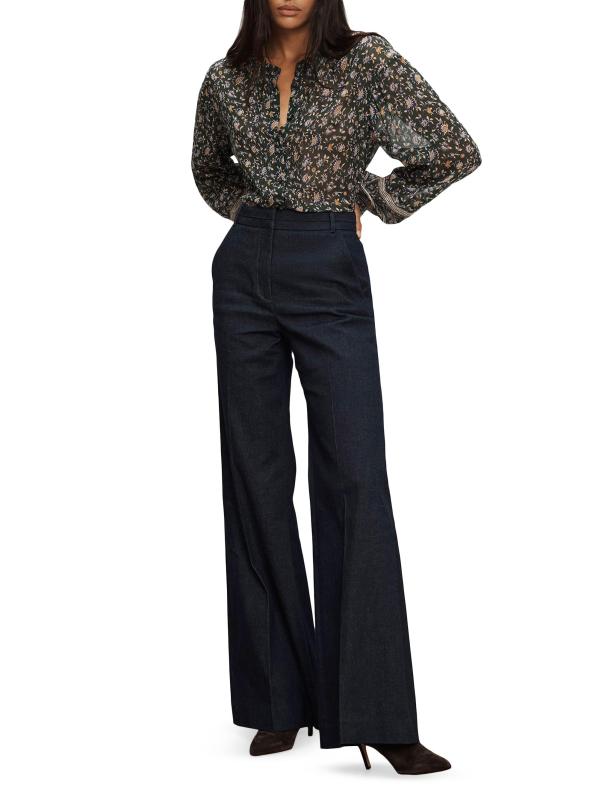 يتميز بنطال Crue هذا من Veronica Beard بتصميم مصمم خصيصًا وشقة كلاسيكية عالية وساق واسعة.