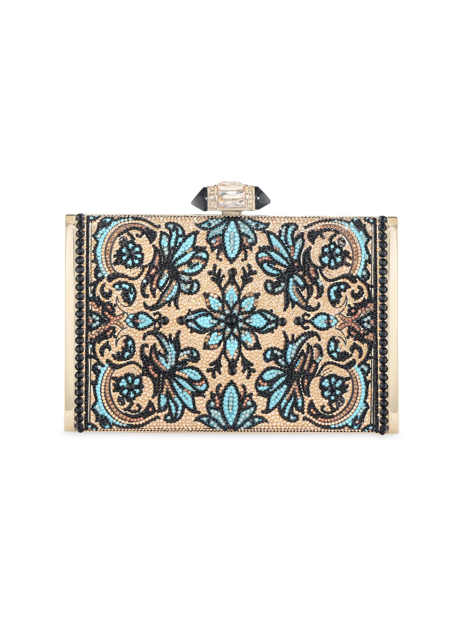 تتميّز حقيبة Judith Leiber Couture بحزام كتف على شكل سلسلة قابلة للإزالة وتصميم خارجي جريء مزيّن بالكريستال.