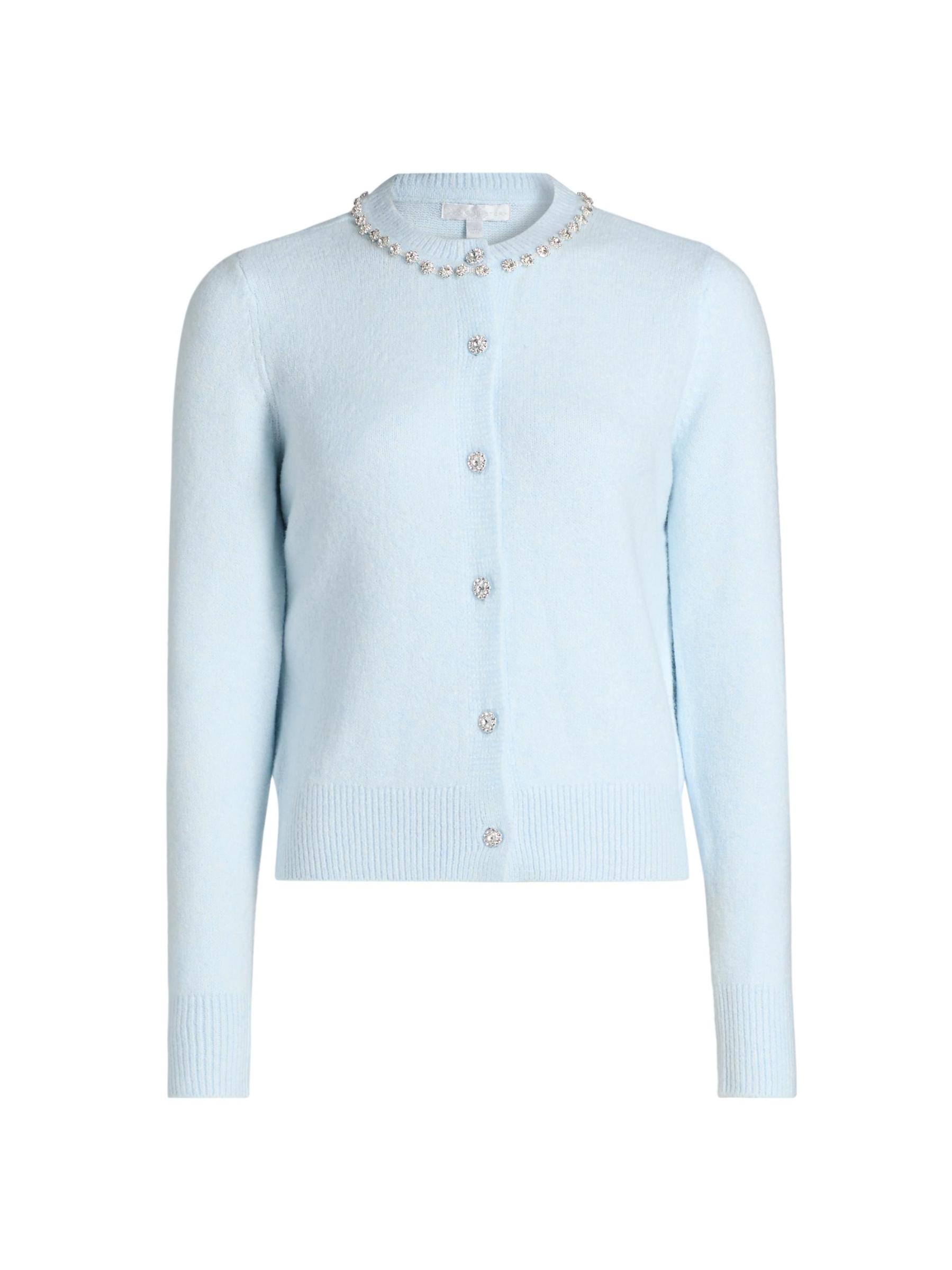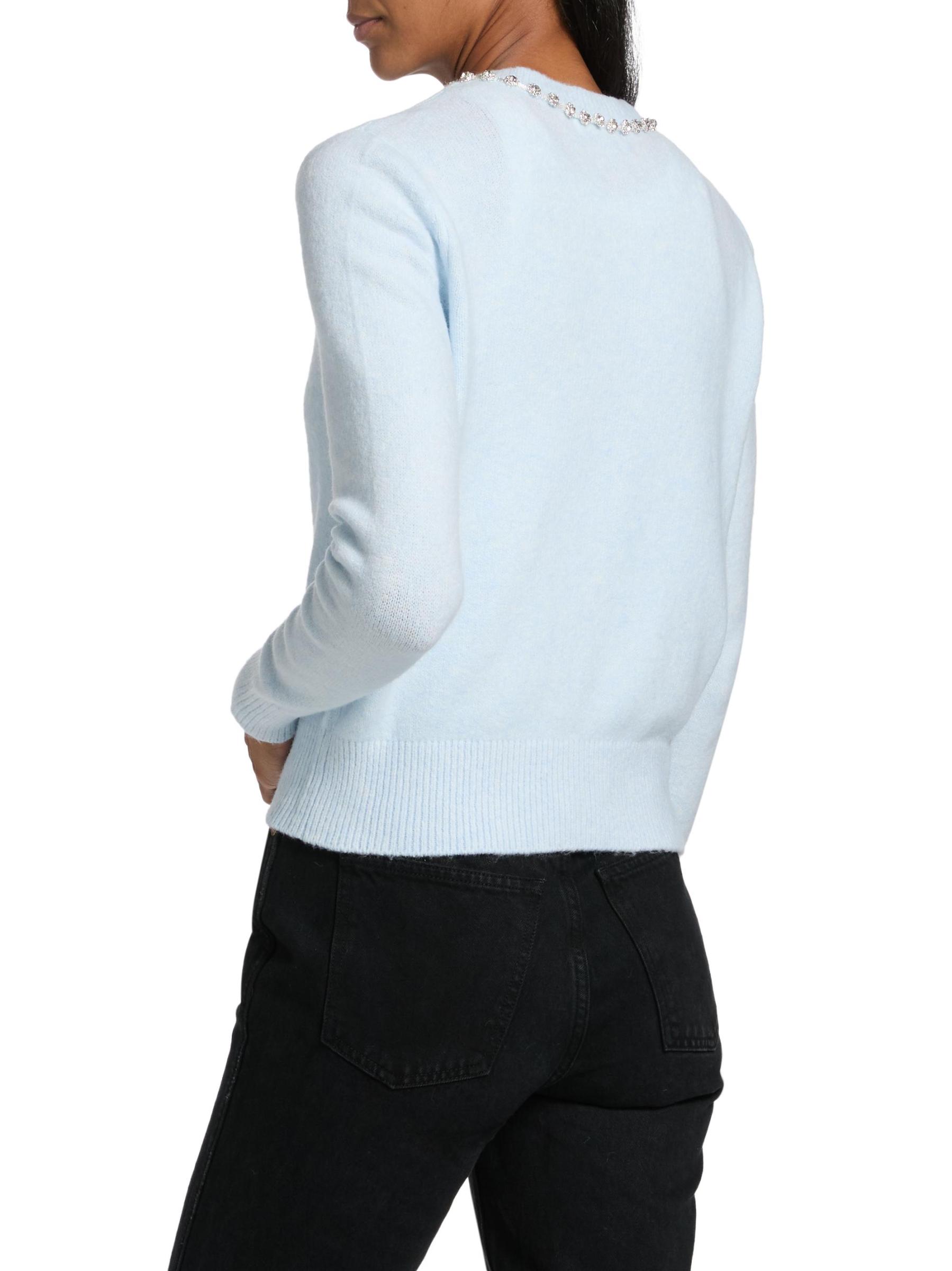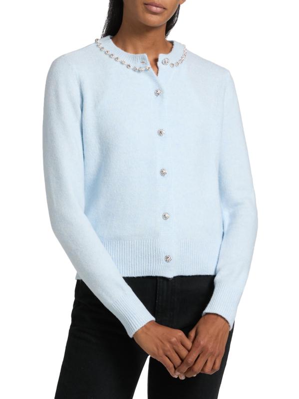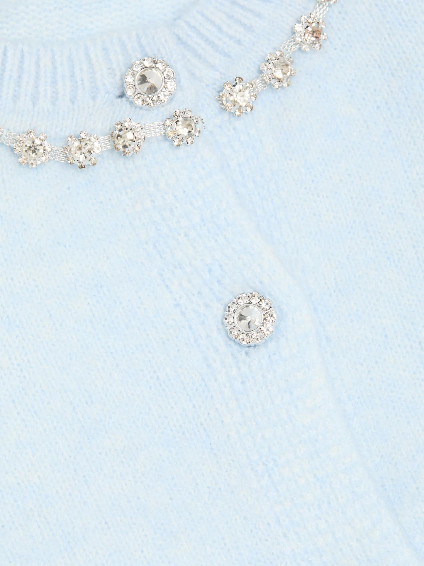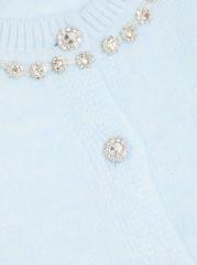 سترة محبوكة برقبة مستديرة مزينة بالكريستال
