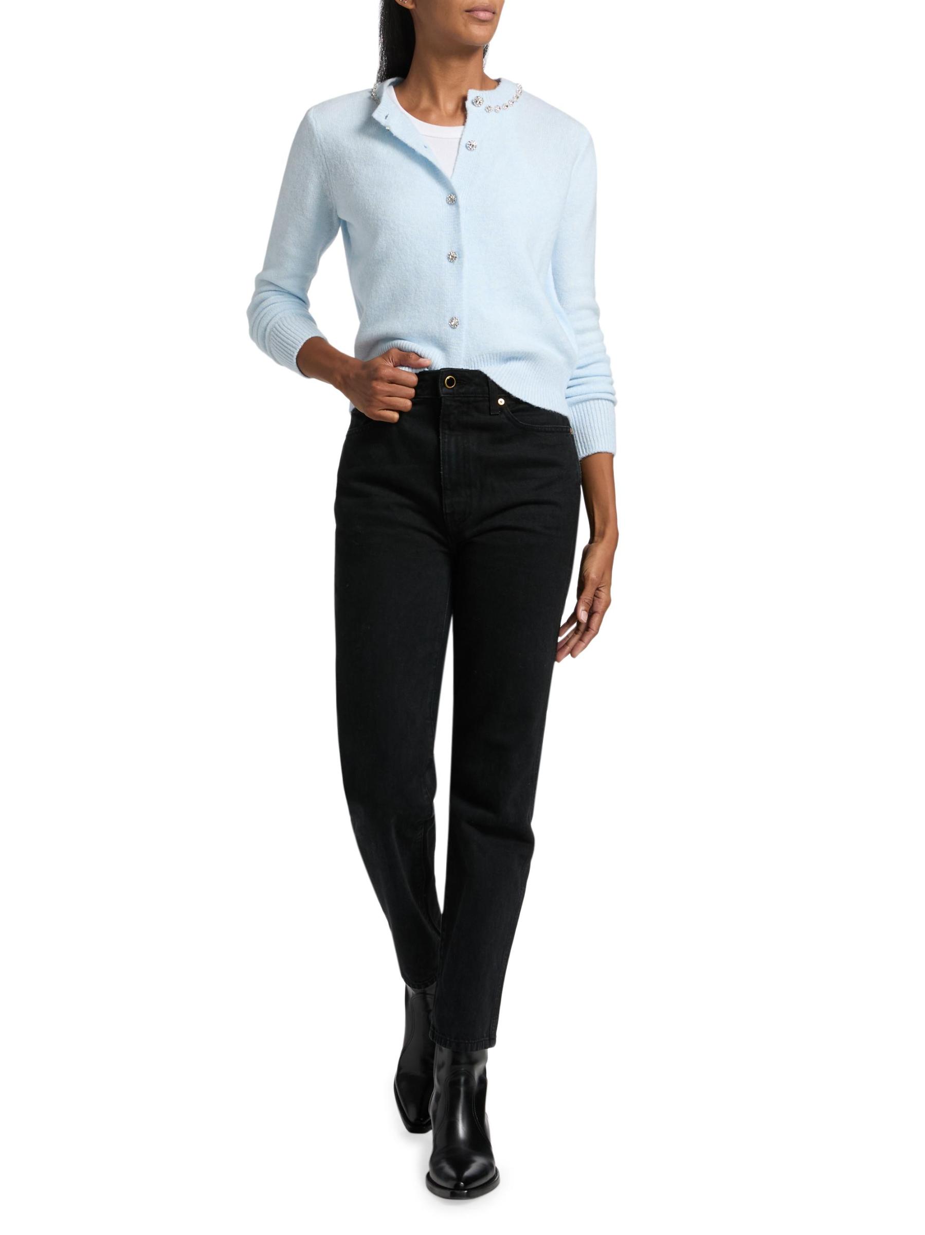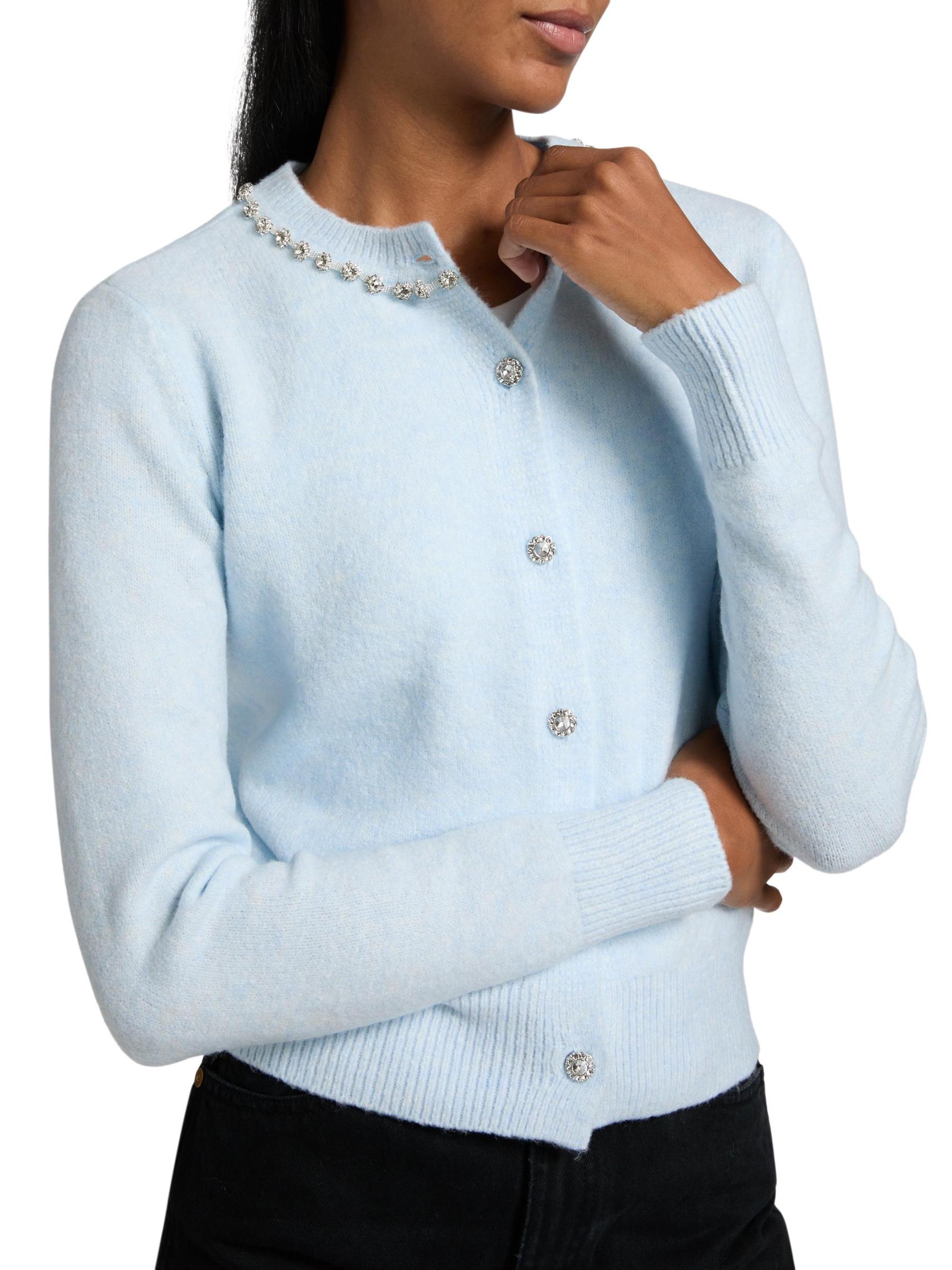 هذا الكارديجان من Design History مصنوع من مزيج محبوك، ويتميز بياقة مستديرة مع زخرفة كريستالية وإغلاق بأزرار أمامية مزخرفة.