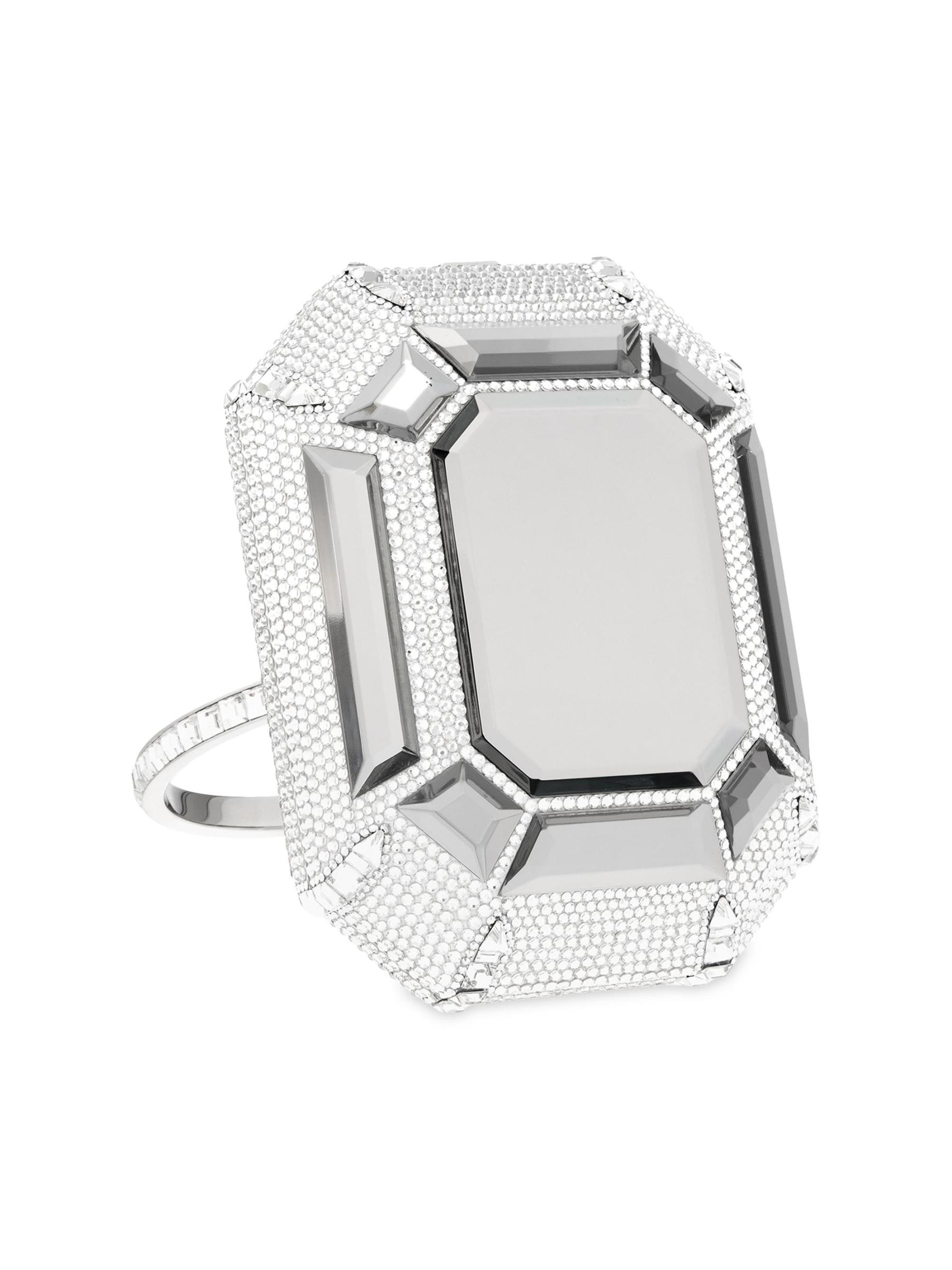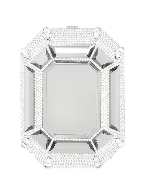 هذه الحقيبة الأنيقة ذات الشكل الدائري من Judith Leiber Couture مزينة بالكريستال اللامع وتتضمن حزام سلسلة قابل للإزالة.