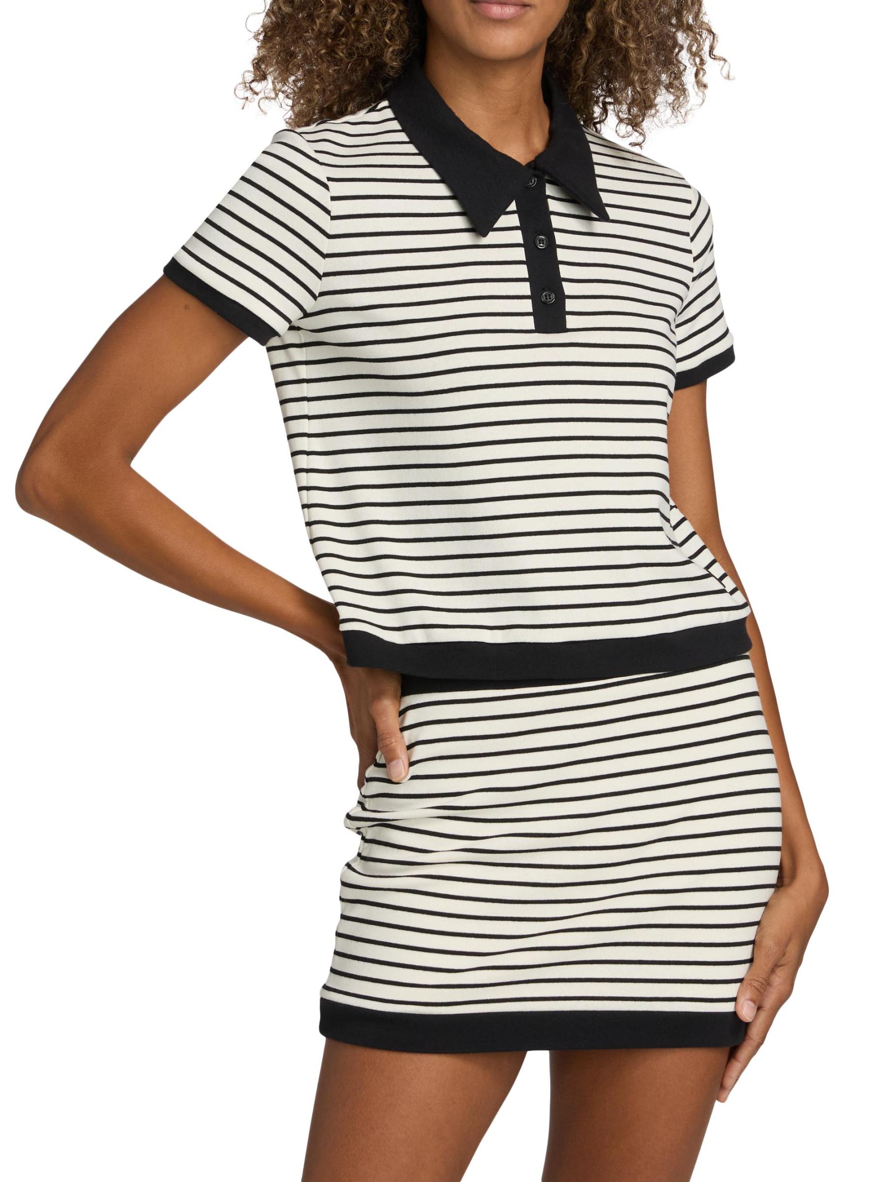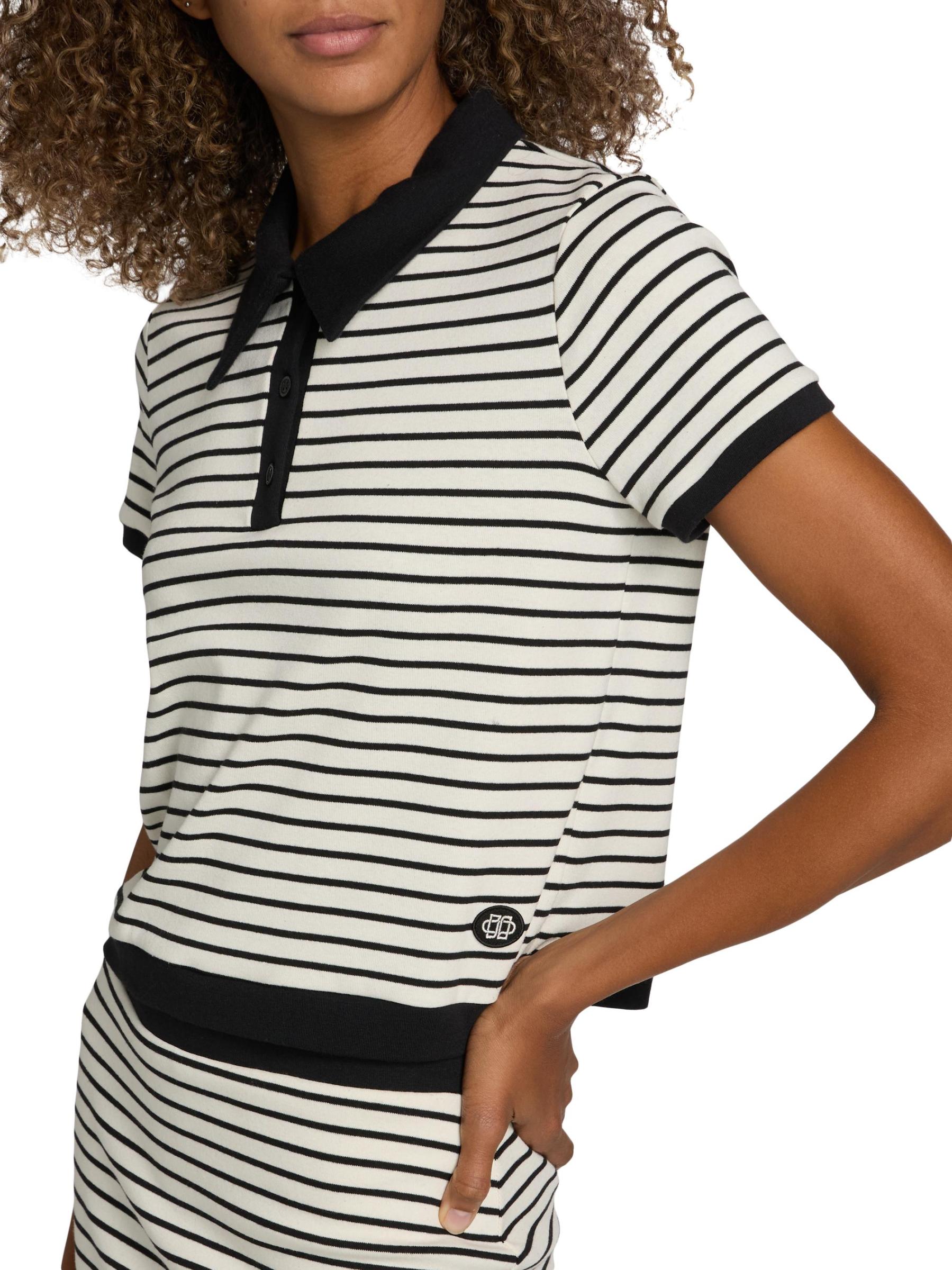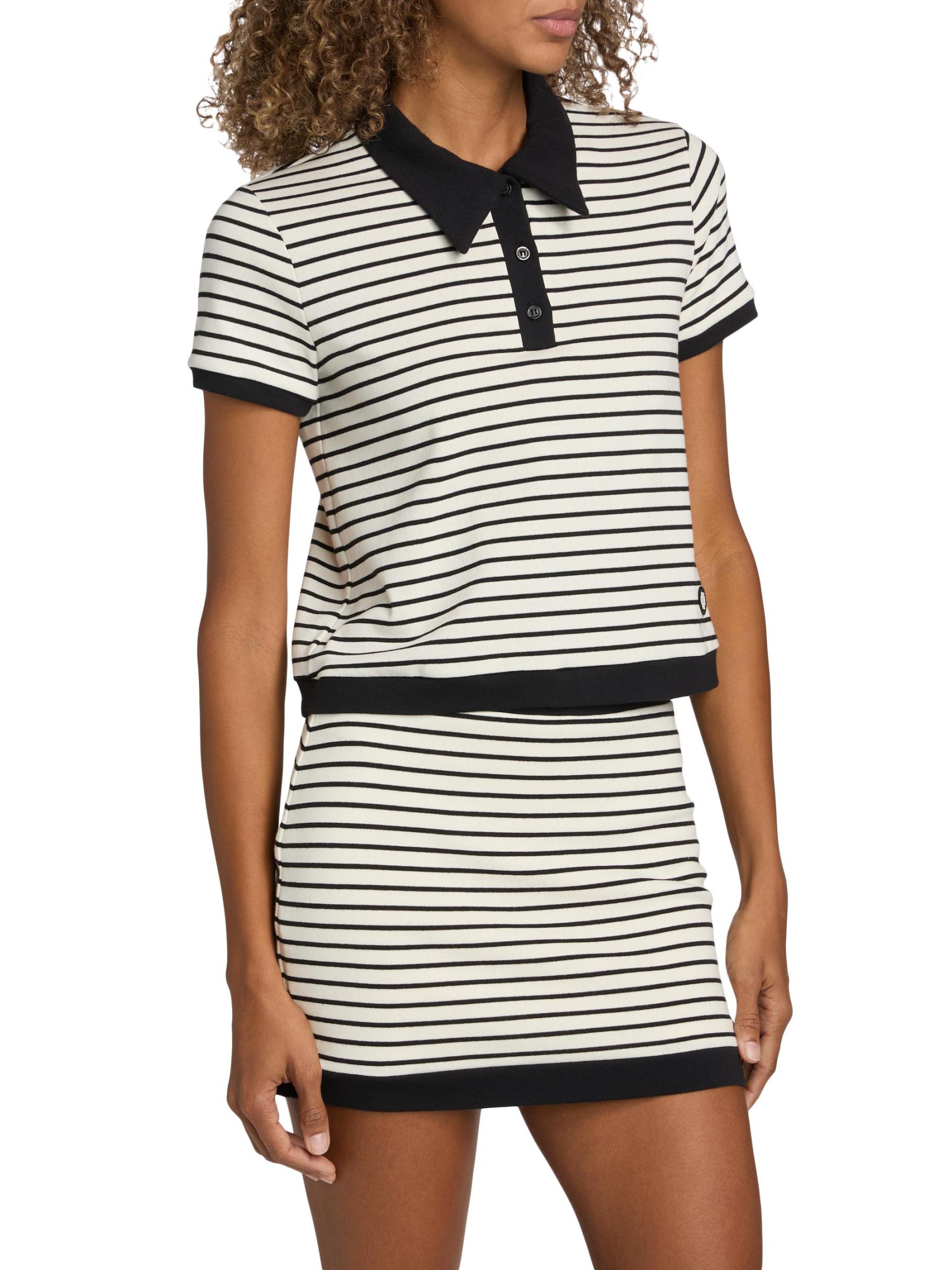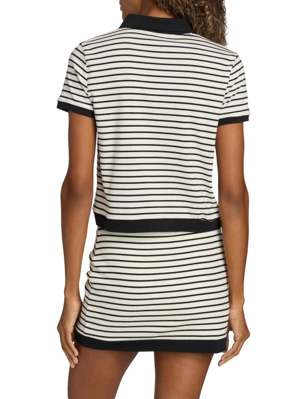 صُنع قميص بولو Cullen من SIMKHAI من مزيج القطن المرن الفاخر والمزين بنمط مخطط.طوق سبريد أكمام قصيرة إغلاق بأزرار أمامية 53% بوليستر/ 42% قطن/ 5% سباندكس تنظيف جاف صُنع في الولايات المتحدة الأمريكية