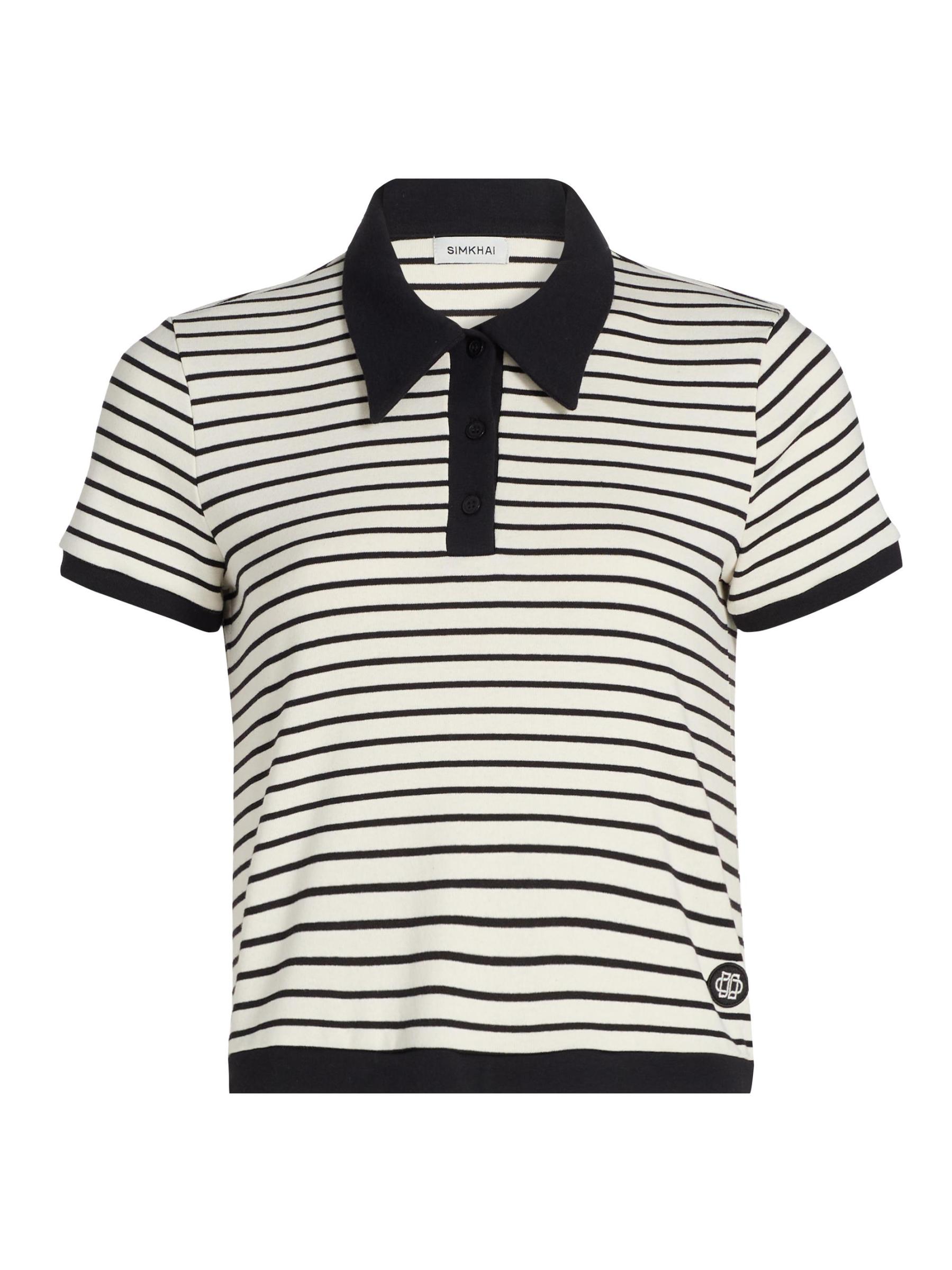 صُنع قميص بولو Cullen من SIMKHAI من مزيج القطن المرن الفاخر والمزين بنمط مخطط.