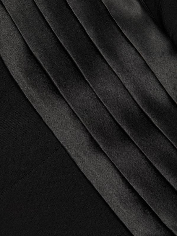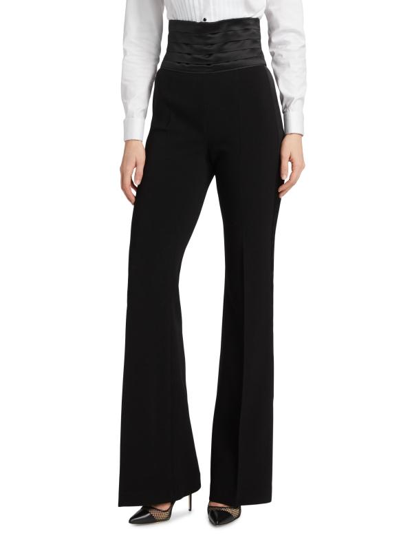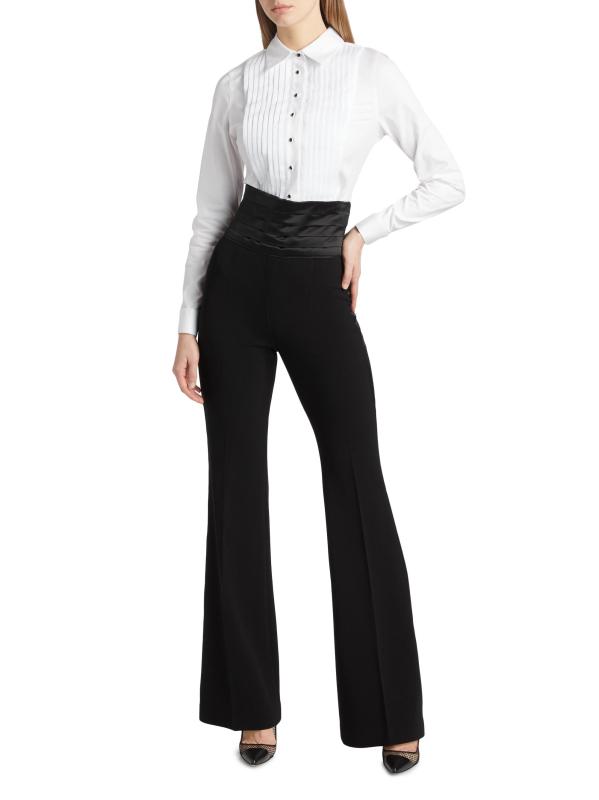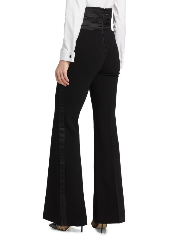 تتميز سراويل التوكسيدو من Sergio Hudson بحزام خصر مثقوب وخطوط جانبية من الساتان وتصميم عالي الخصر.
