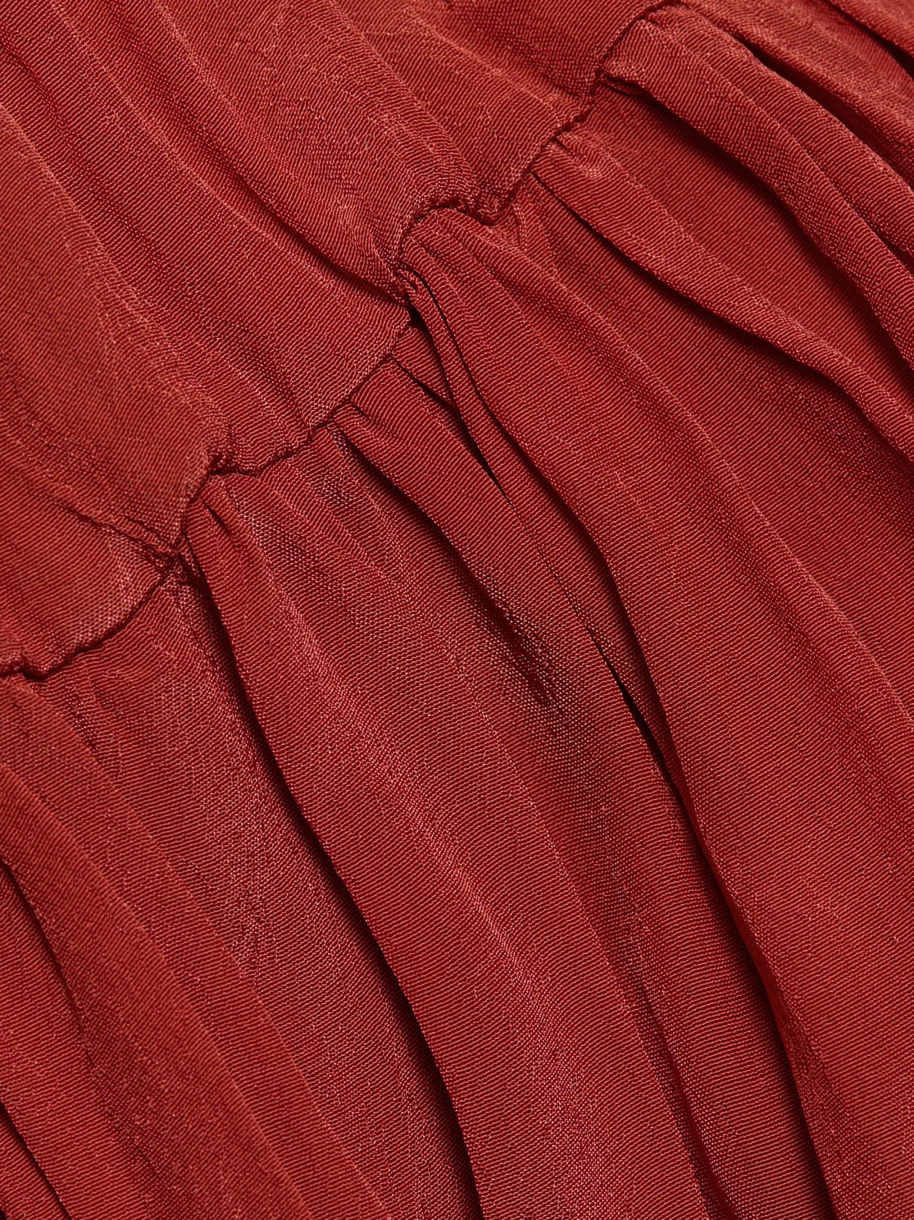 فستان Cumbre maxi من Carolina K مصنوع من قماش خفيف الوزن ومصمم بياقة واسعة وتقليم بشراشيب وتطريز في الخلف وربطة على الخصر.
