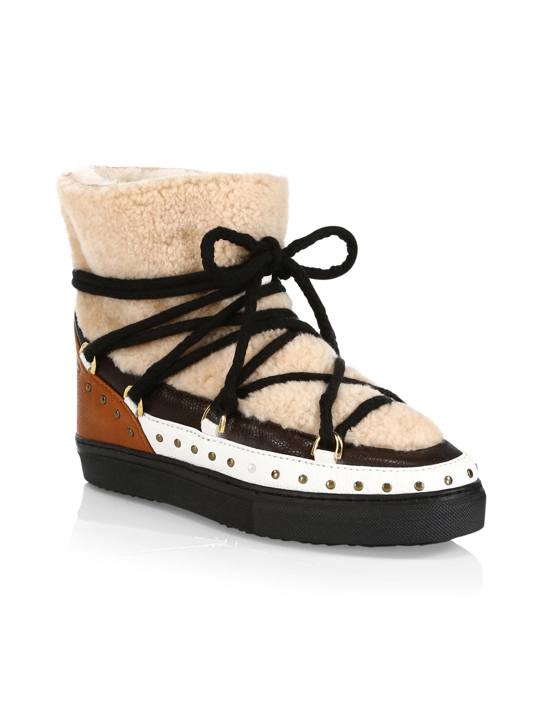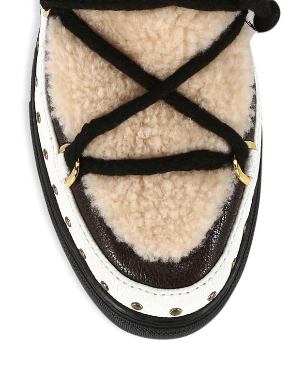 يتميز حذاء Curly Rock الرياضي من Inuikii بألواح جلدية مزينة بأزرار ذهبية اللون وتعلوها أربطة متقاطعة.50% من جلد الماعز، 45% من جلد الخراف المجعد، الجزء العلوي من الدانتيل القطني بنسبة 5% إصبع مستدير مشبك بأربطة سهل الارتداء بطانة من جلد الخراف بنسبة 100% نعل مطاطي مقاوم للماء نوع الفراء: شيرلينغ مصبوغ أصل الفراء: جنوب إفريقيا مستوردة