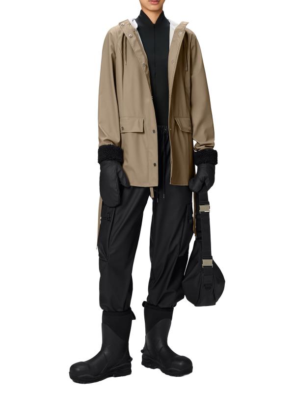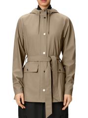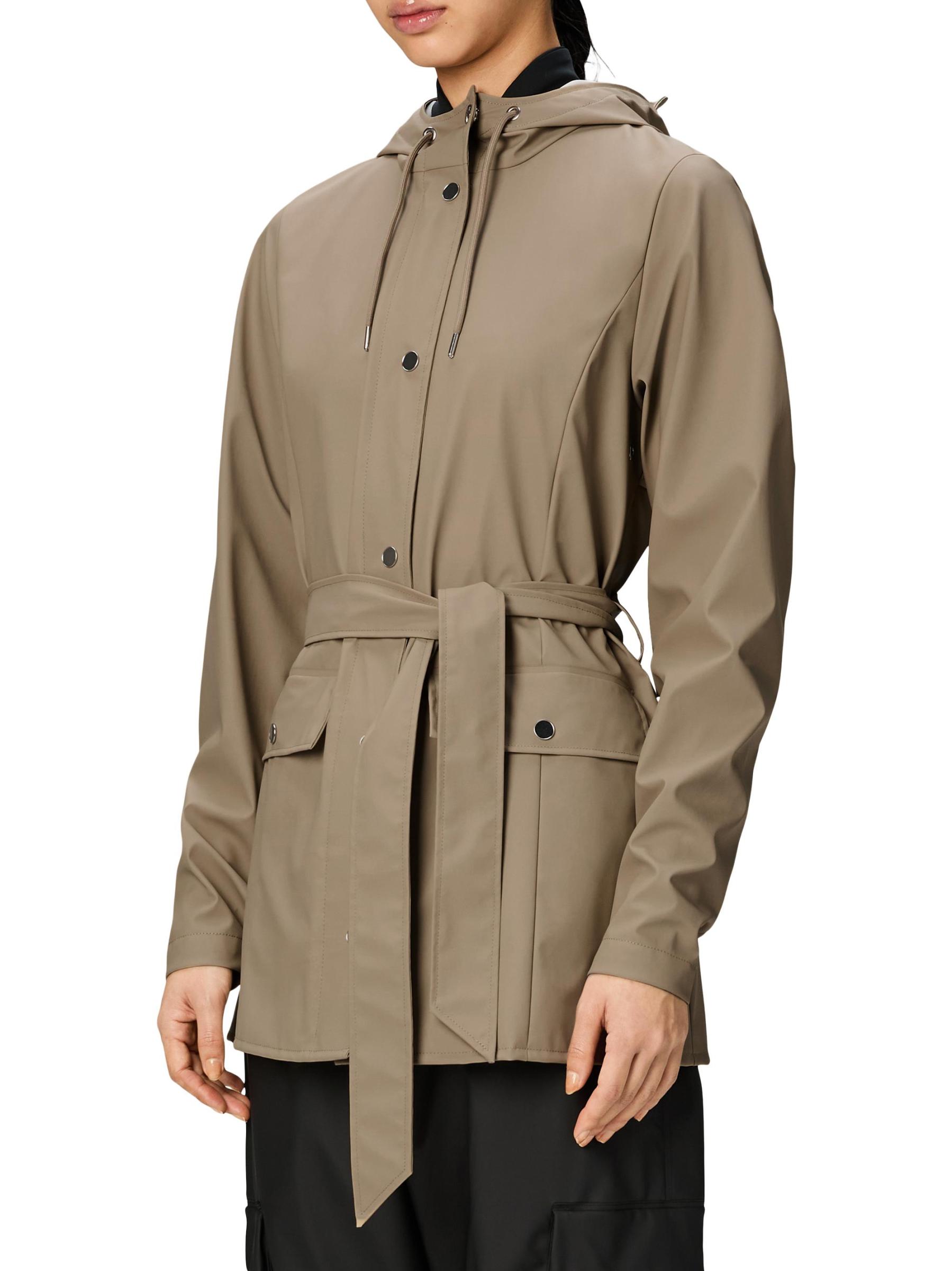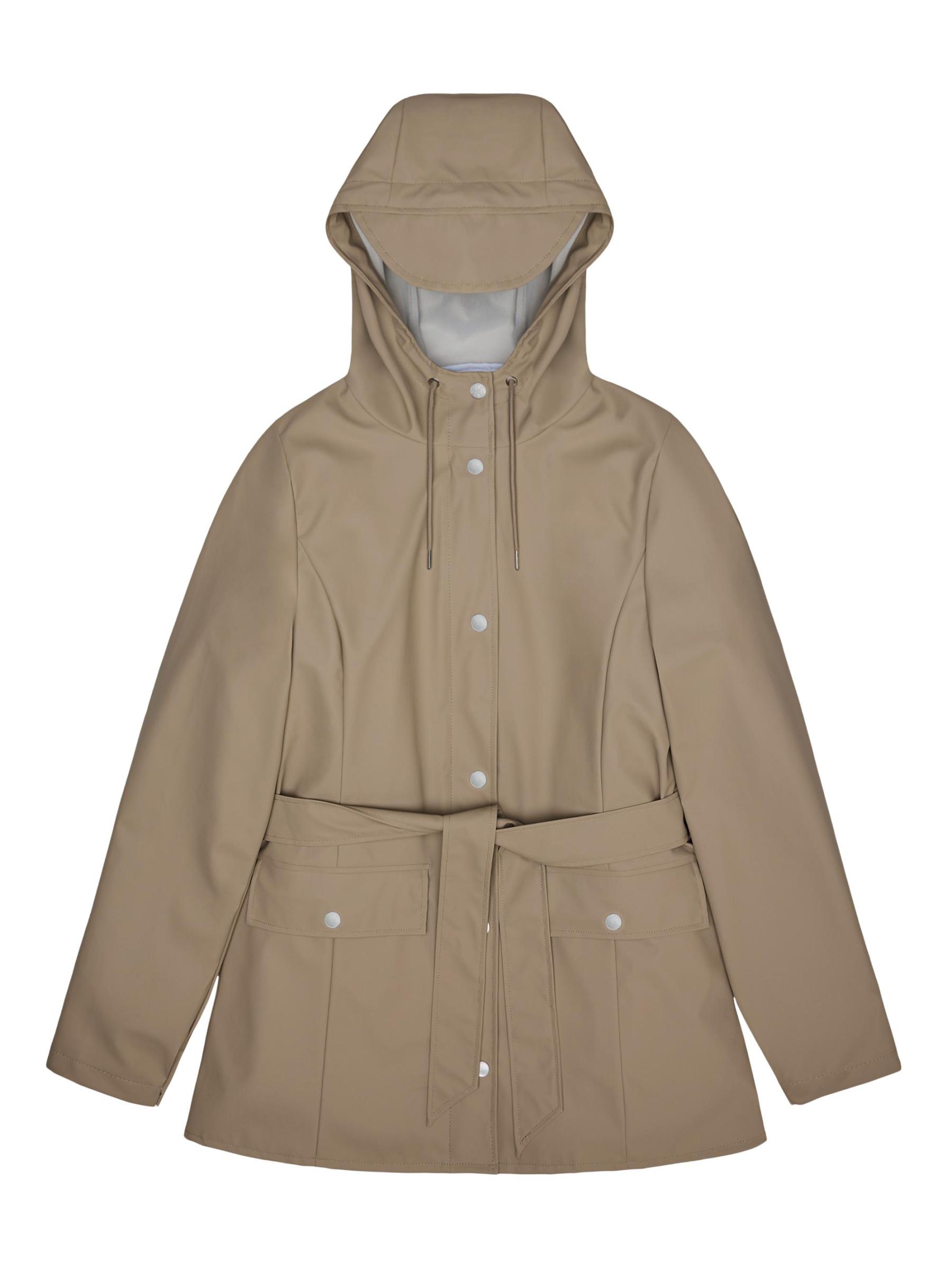 من مجموعة كيرف. تتميز سترة Curve هذه من Rains بتصميم مقاوم للماء مع تفاصيل ملائمة لظروف الطقس بما في ذلك غطاء للرأس وجيوب جانبية قابلة للإغلاق وسحّاب أمامي مع فتحة مانعة للعواصف المفاجئة. يضفي الحزام الذاتي شكلًا إضافيًا على هذه الطبقة.