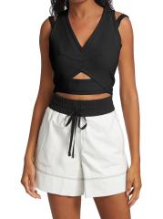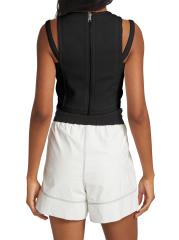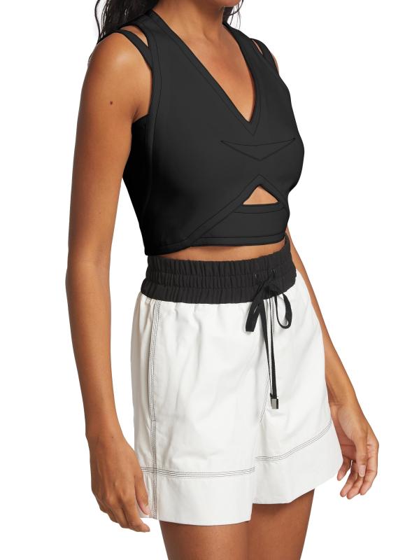 تتميّز هذه البلوزة القصيرة بفتحات هندسية ورقبة على شكل حرف V، وهي مزوّدة بسحّاب خلفي مكشوف.رقبة على شكل حرف V بدون أكمام سحّاب خلفي مكشوف فتحات هندسية بوليستر تنظيف جاف صُنع في الولايات المتحدة الأمريكية