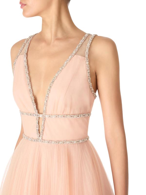 فستان على شكل حرف A من التول مزيّن بـ Cybele