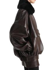 جاكيت ديمون من الجلد بياقة شيرلينغ