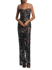 يتميز فستان Dahlia maxi هذا من Bronx and Banco بتصميم مزين بالترتر الزهري مع تقويرة رومنسية وأحزمة ثابتة مزينة بالكريستال.