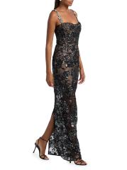 يتميز فستان Dahlia maxi هذا من Bronx and Banco بتصميم مزين بالترتر الزهري مع تقويرة رومنسية وأحزمة ثابتة مزينة بالكريستال.رقبة على شكل قلب أحزمة قابلة للتعديل شق خلفي إغلاق بسحّاب خلفي 100% بوليستر البطانة: 95% بوليستر/ 5% إليستين تنظيف جاف مستوردة