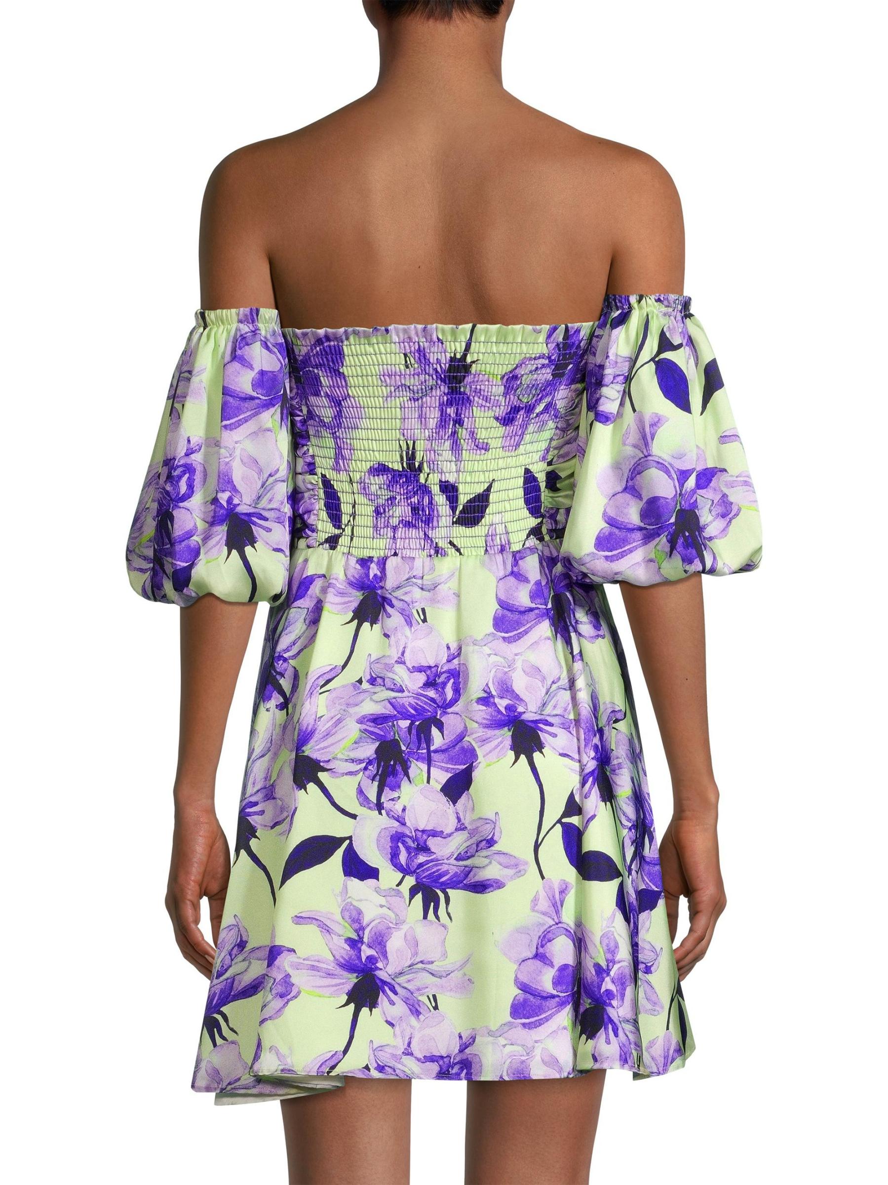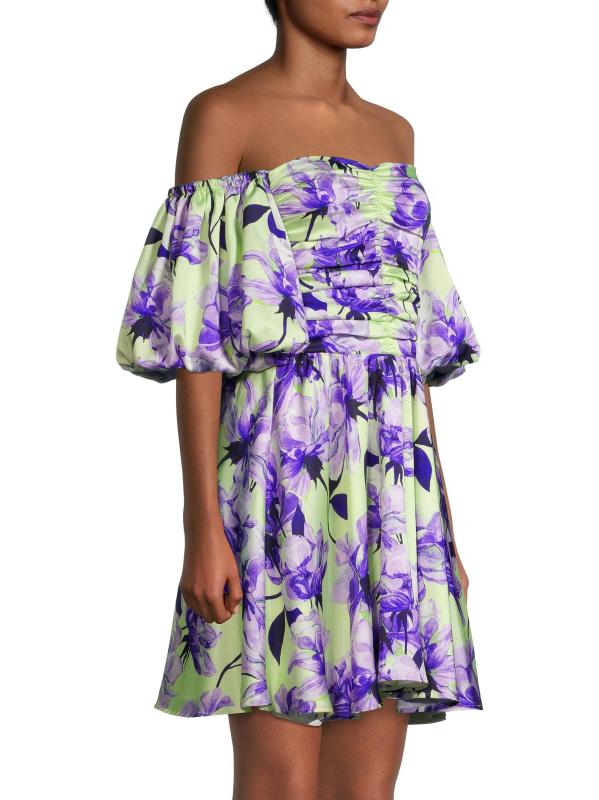 فستان داليا قصير مكشوف الأكتاف بأكمام منفوخة