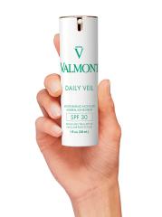 مركب الحماية (أكسيد الزنك ومشتق الكارنوزين) للحماية الفورية ضد أضرار UVA و UVB. يساعد مركب Comfort (الحمض النووي الريبي الشحمي واليوريا والسكوالين وزيت الأرغان) على استعادة حاجز البشرة واستعادة مستويات ترطيبها. مركب النعومة والثبات. تم تطوير مركب Silicium D2 الحصري من قبل Valmont وتم الاعتراف به من قبل الخبراء العلميين، وهو يكمل مزايا نعومة وثبات Daily Veil مع الحماية من الأشعة فوق البنفسجية UVA/UVB.