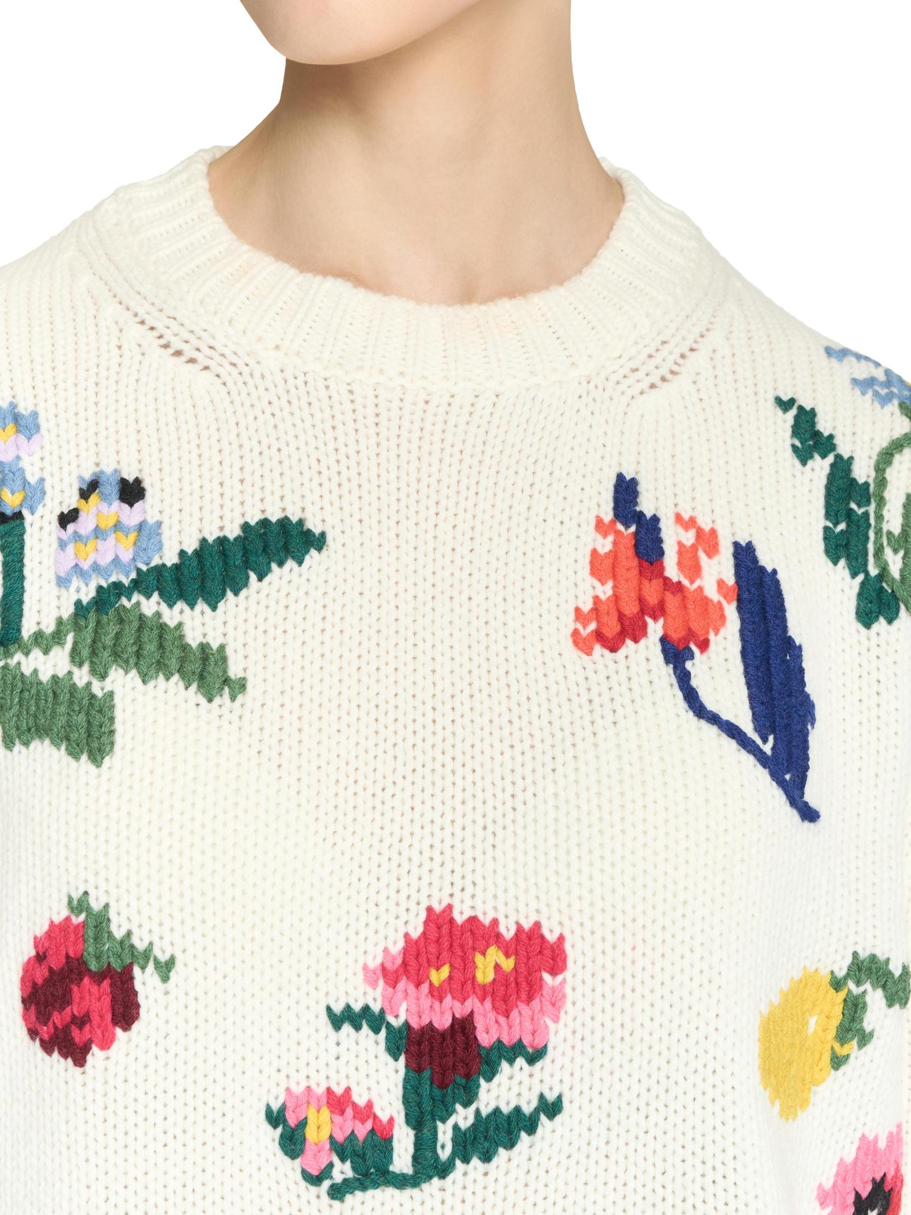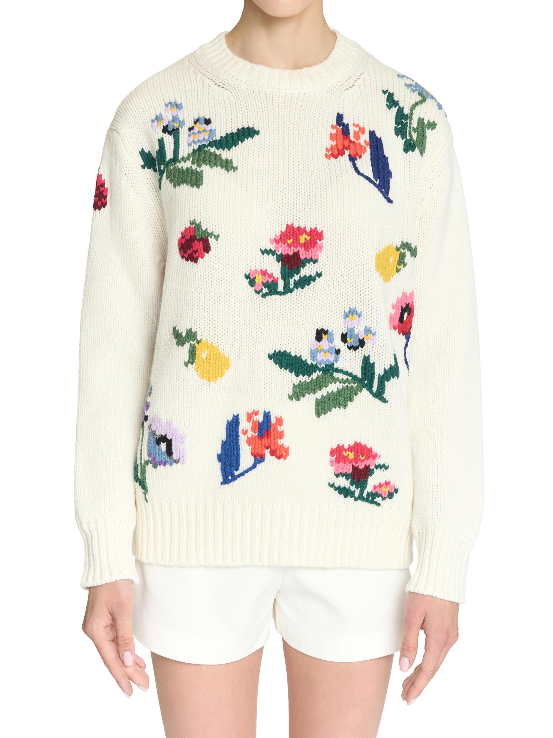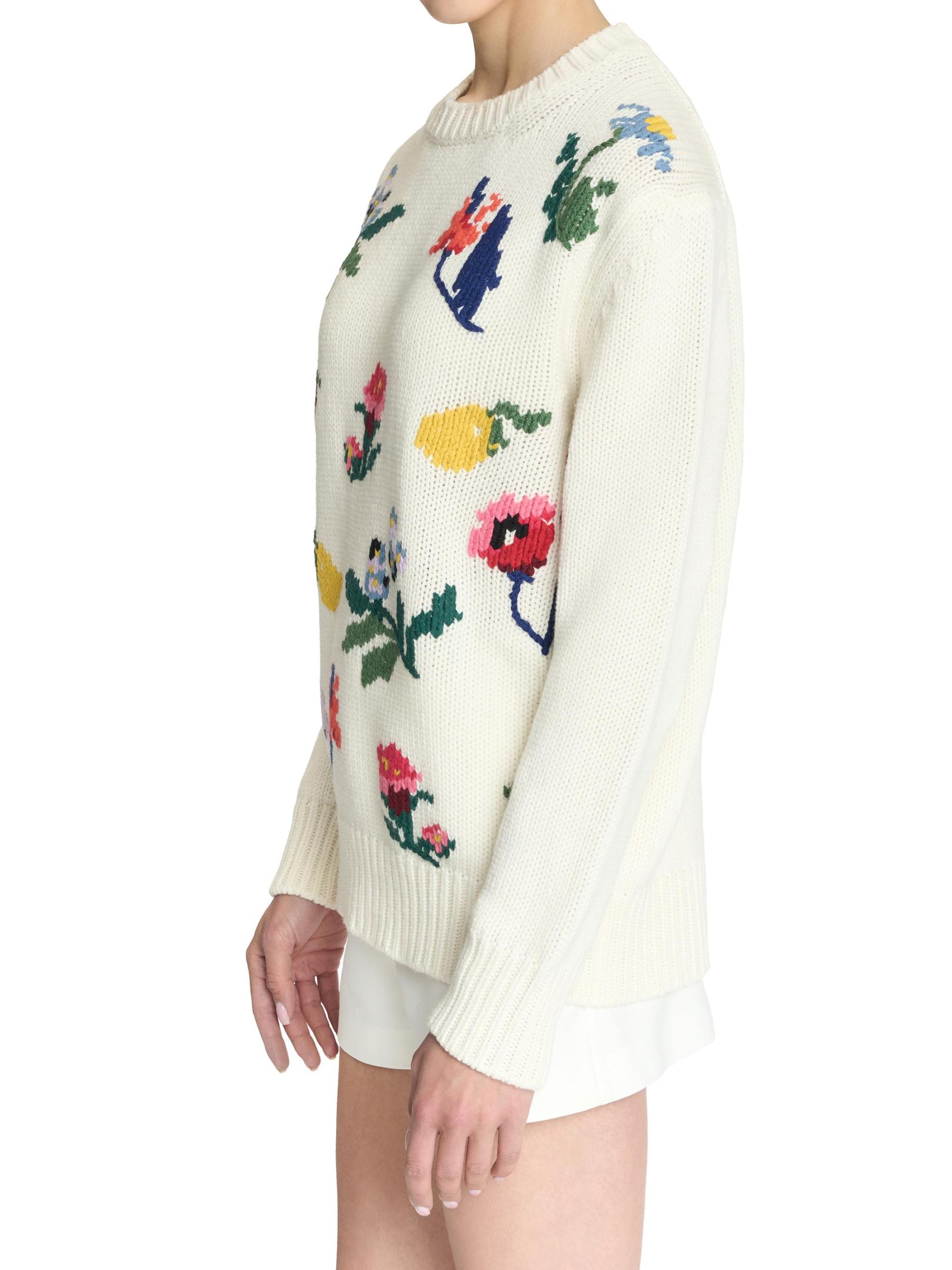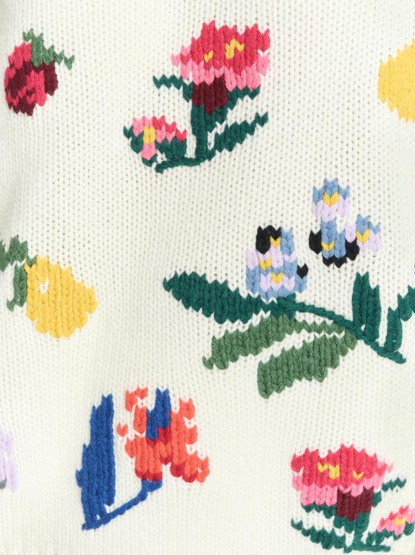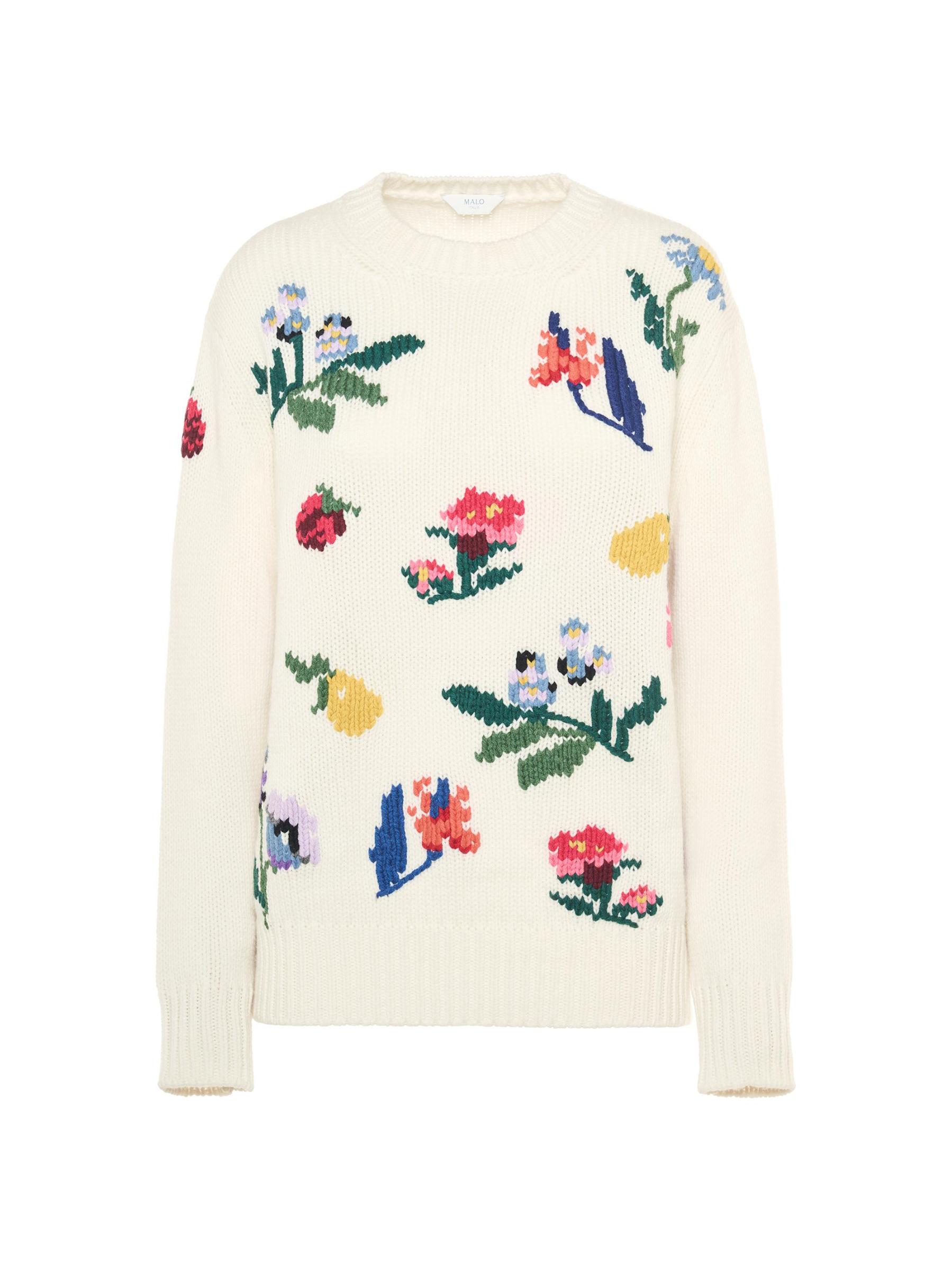 صُنعت سترة داليا ذات الرقبة المستديرة من مالو من الكشمير المحبوك المضلع، وهي مطرزة يدويًا بزخارف نباتية.