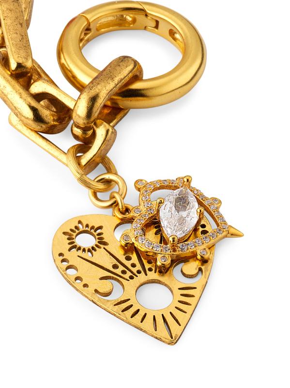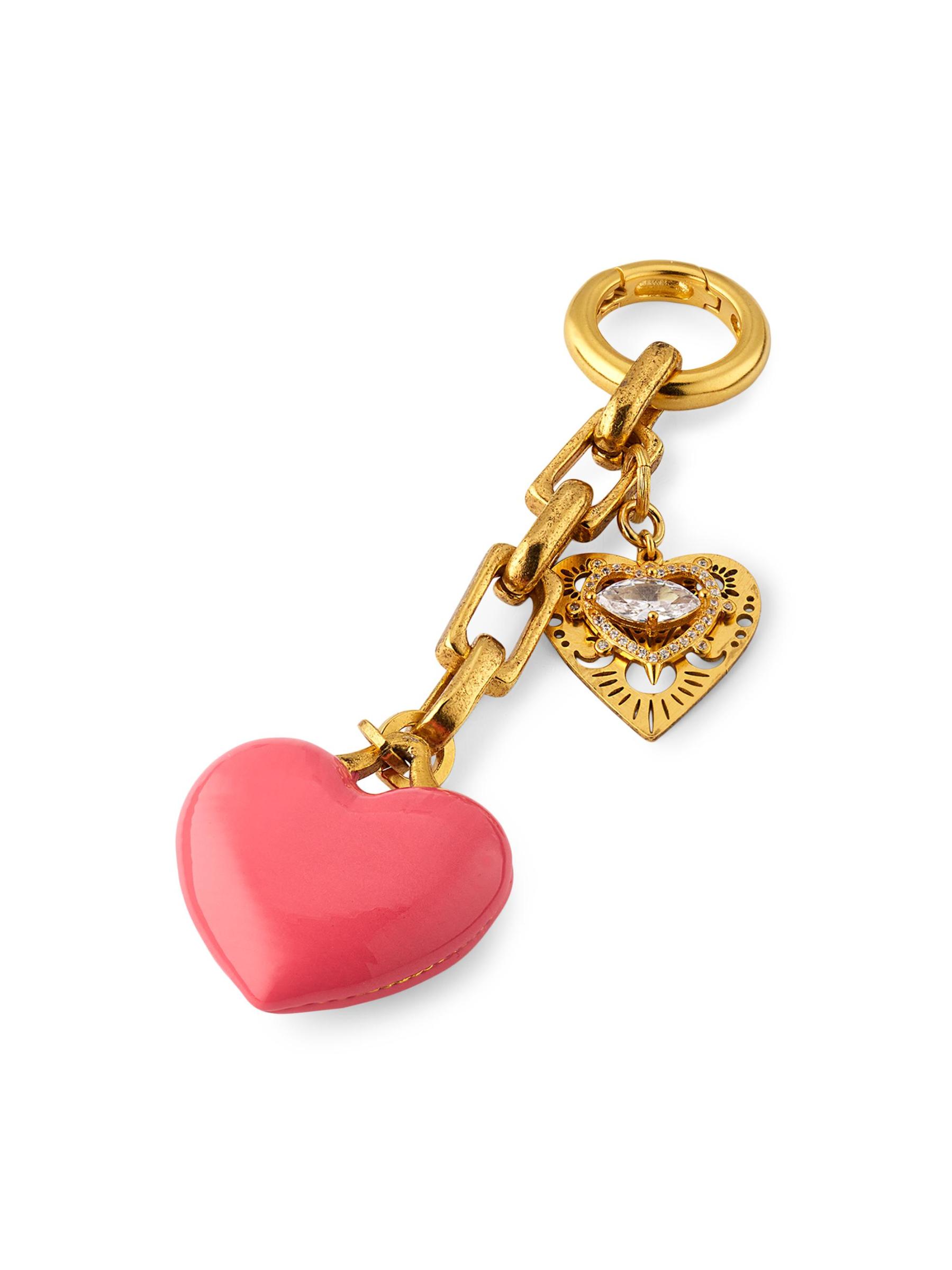 صُنع سحر حقيبة Dalrina من إليزابيث كول من النحاس المطلي بالذهب عيار 24 قيراطًا. تثبت السلسلة ذات الشكل المربع المينا اللامع والقلوب المرصعة بالكريستال.كريستالات طلاء بالمينا نحاس مطلي بالذهب عيار 24 حلقة مفصلية صُنع في الولايات المتحدة الأمريكية