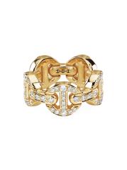 نسخة فاخرة كاملة من الخاتم الكلاسيكي ثلاثي الوصلات، تتميز بالتصميم المميز بخمس حلقات من الذهب اللامع.