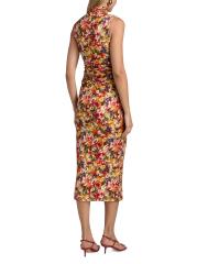 صُمم فستان Damira المتوسط بدون أكمام من Amanda Uprichard في صورة بوديكون مع ياقة عالية وتفاصيل مكشكشة. تزين طباعة الأزهار النابضة بالحياة هذا المظهر.