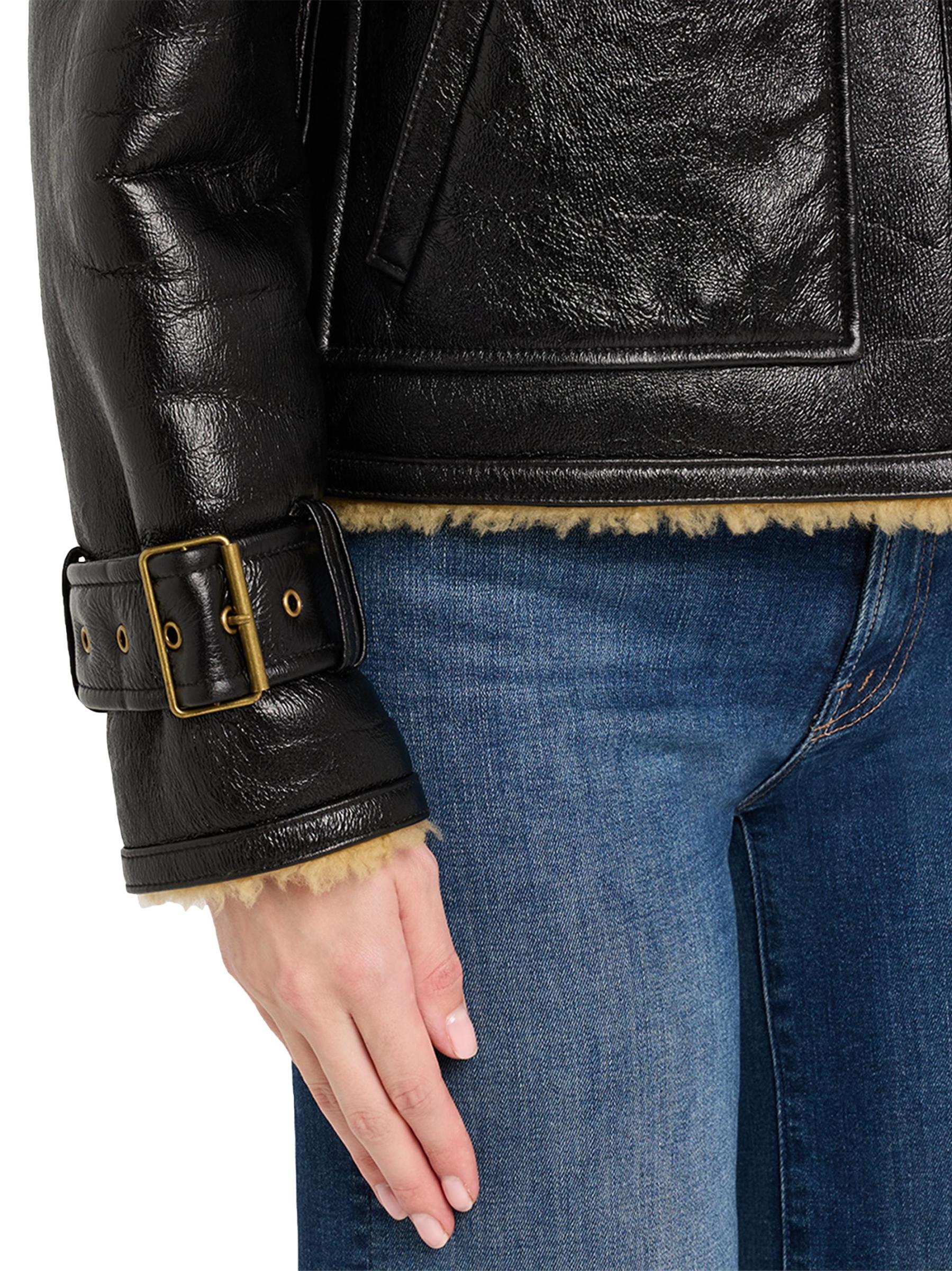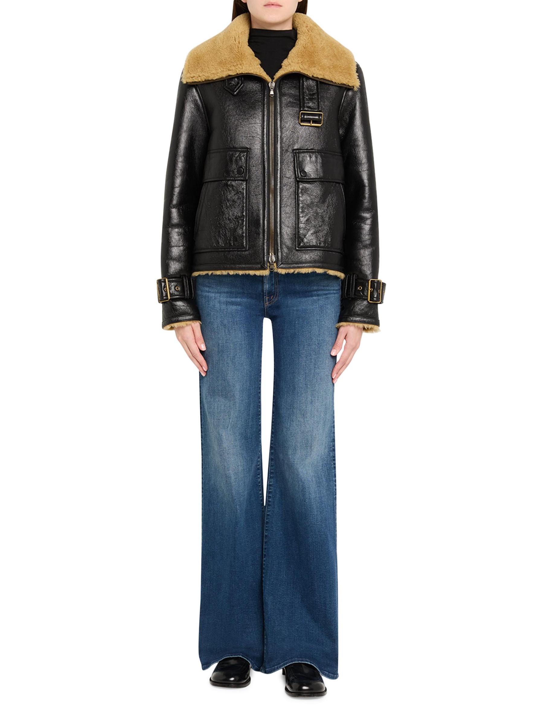 جاكيت دانيكا موتو من فيرونيكا بيرد مصنوع من الجلد ومبطن بالشيرلينغ.