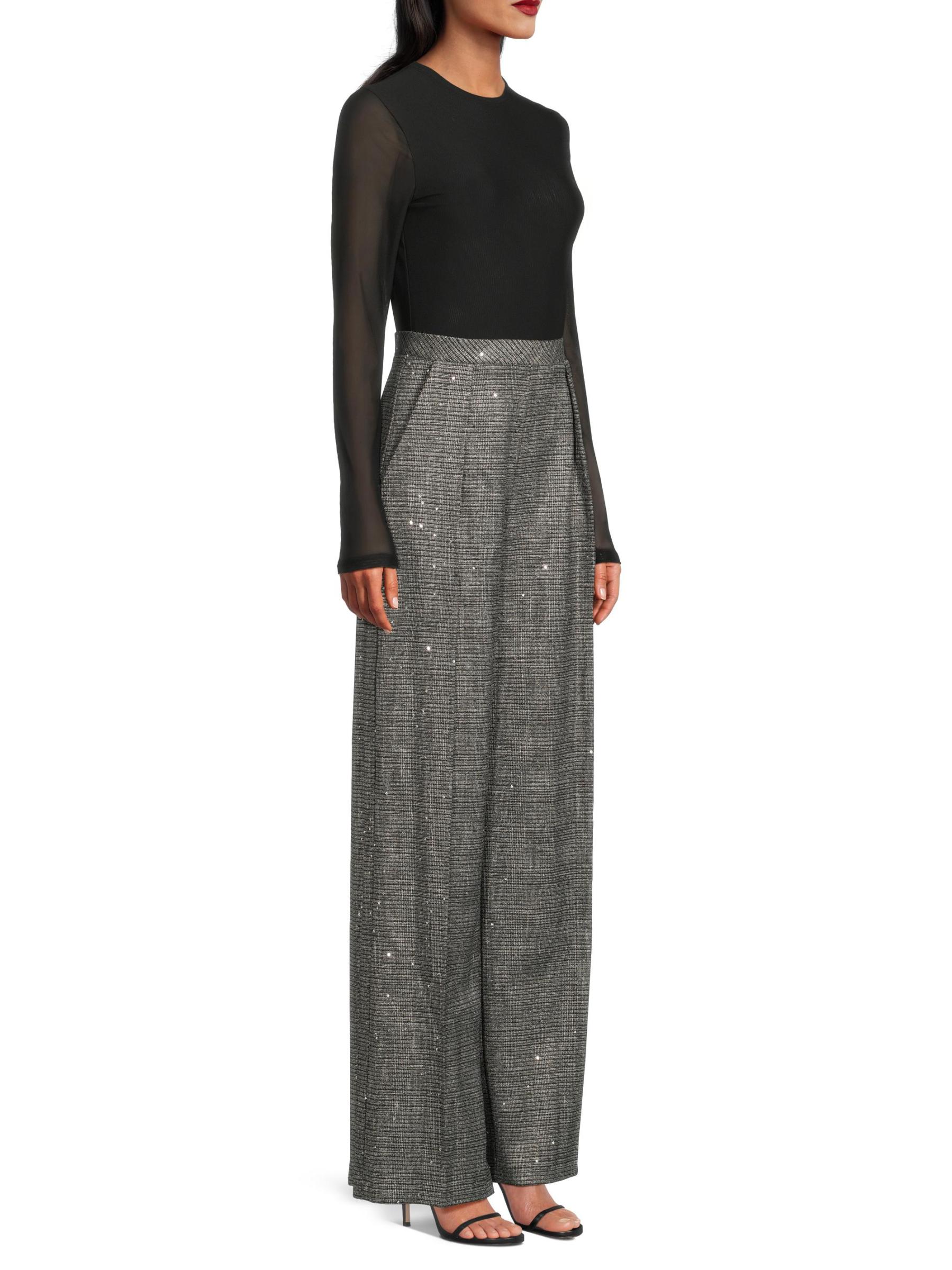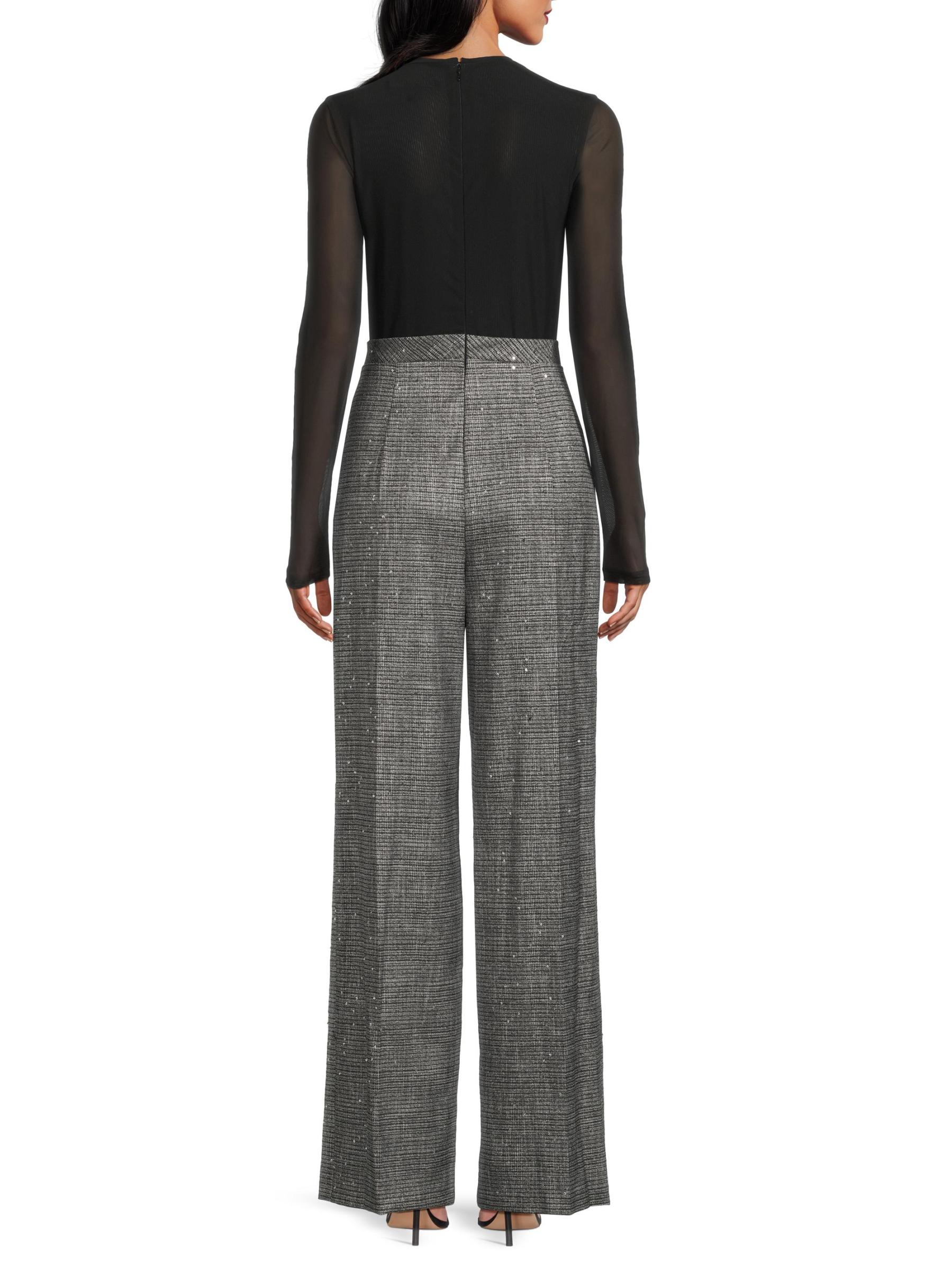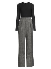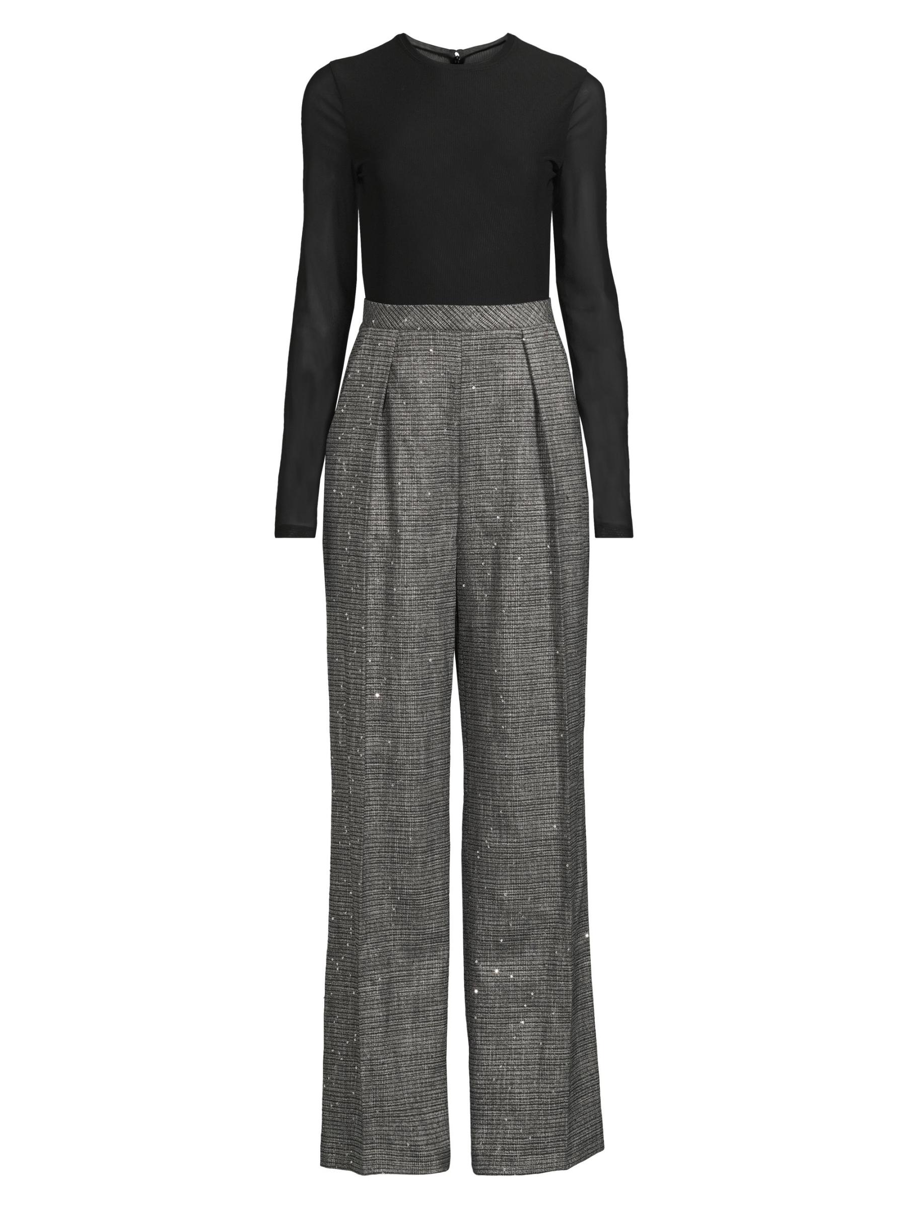 يجمع جمبسوت Dante Mixed media من Black Halow بين النقش المطرّز القابل للتمدد والحياكة المصنوعة من الجيرسيه الصلب، ويتميز بصدّار برقبة مستديرة وأكمام طويلة شفافة وبنطال مريح واسع الساق.