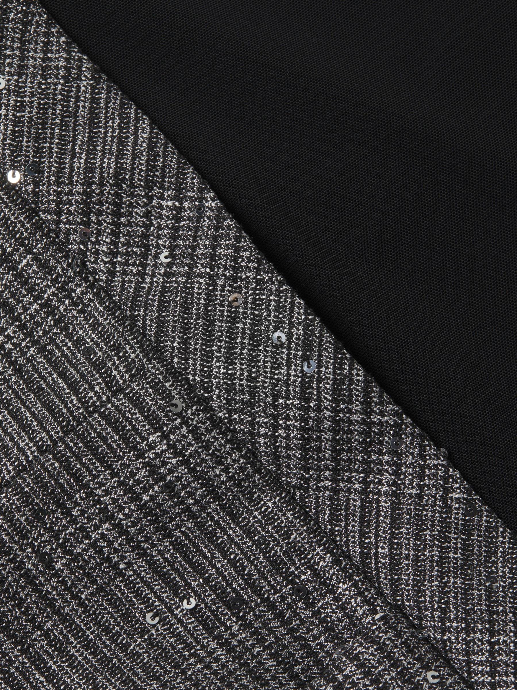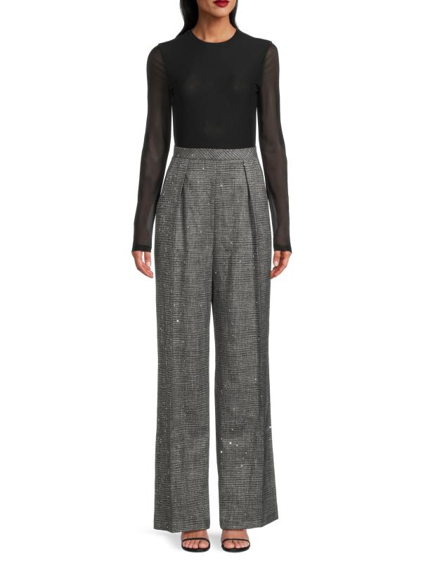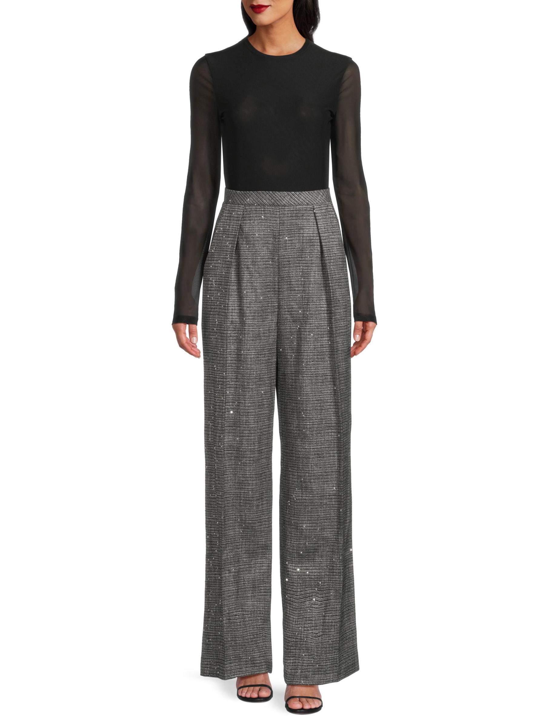 يجمع جمبسوت Dante Mixed media من Black Halow بين النقش المطرّز القابل للتمدد والحياكة المصنوعة من الجيرسيه الصلب، ويتميز بصدّار برقبة مستديرة وأكمام طويلة شفافة وبنطال مريح واسع الساق.