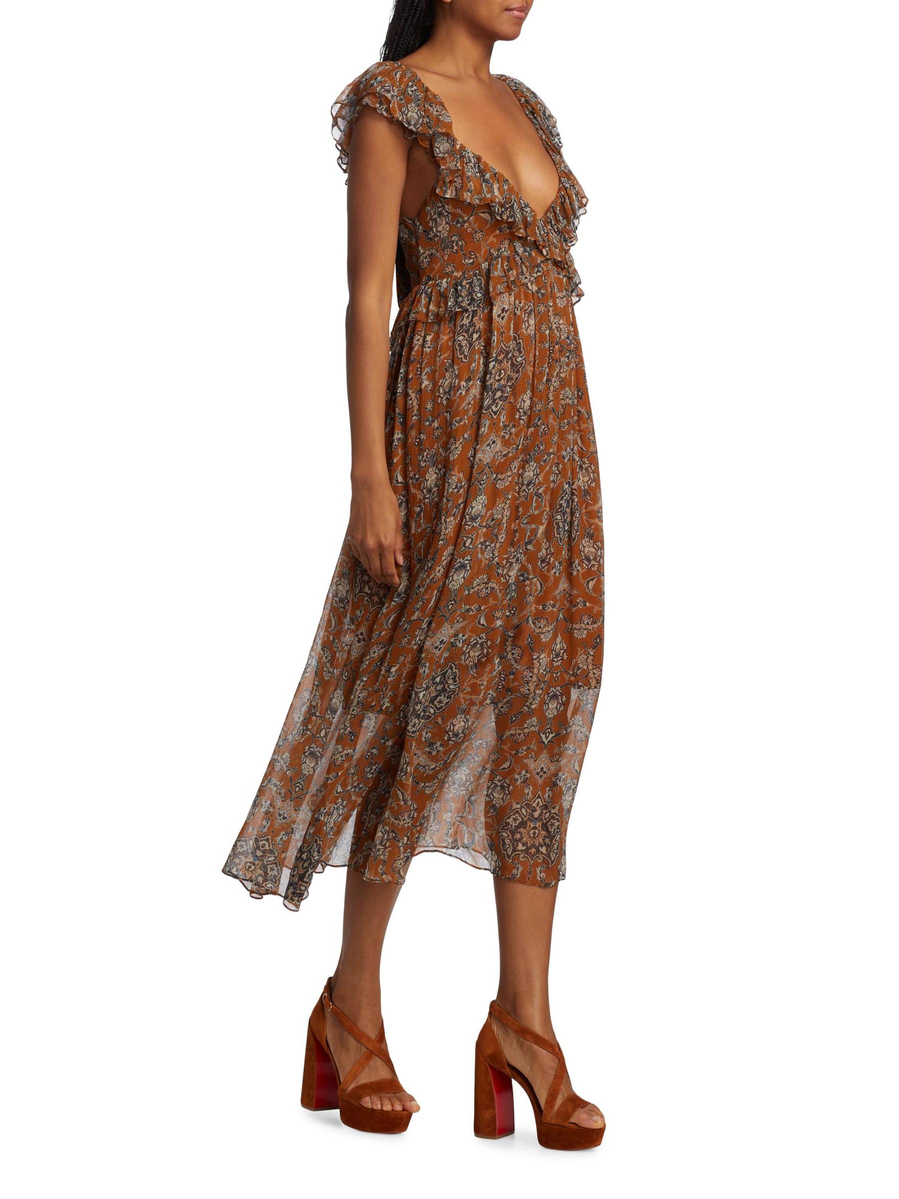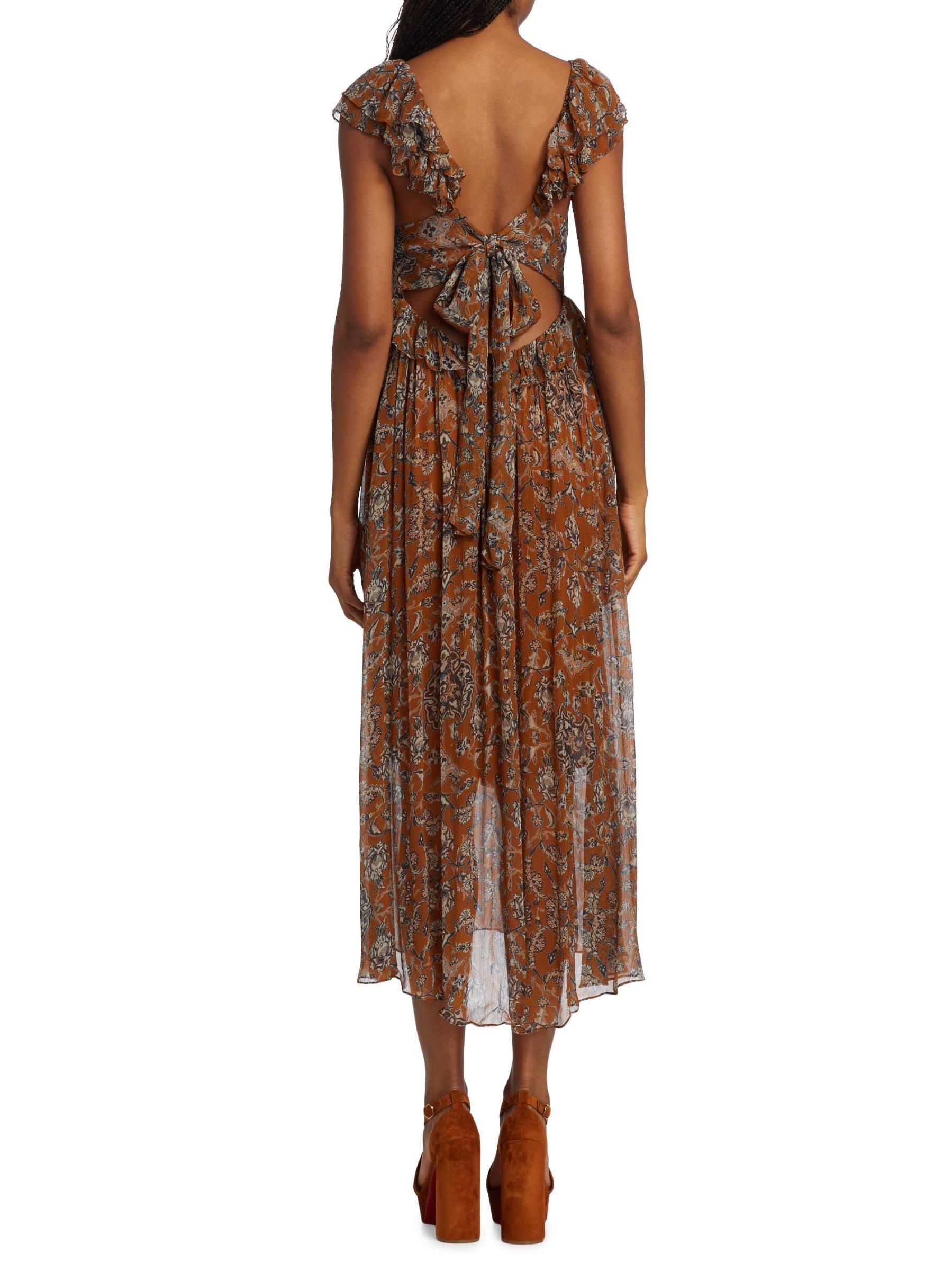 يتميز فستان Dara متوسط الطول من Hannah Artwear بنقشة الأزهار المُزيّنة بكشكشة ساحرة وربطة خلفية ذاتية.