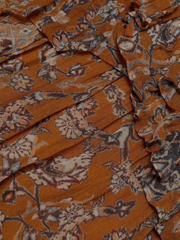 فستان دارا متوسط الطول مزين بكشكشة مزهّرة