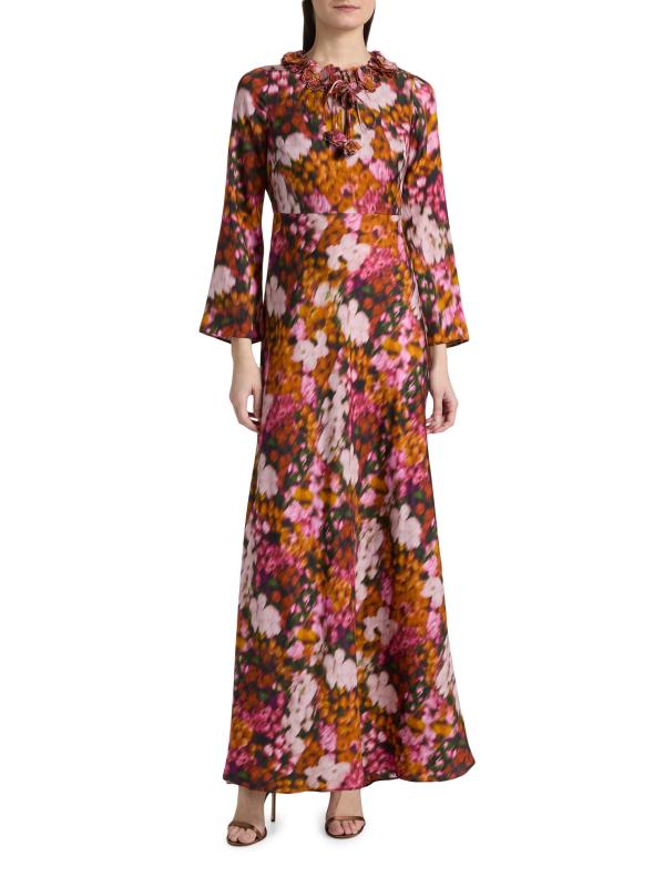 Babi بنقشة الأزهار غير الواضحة، ويتميز بزخارف نباتية معقدة عند خط العنق.ربطة عنق أكمام طويلة إغلاق بسحّاب خلفي 55% حرير/ 45% فيسكوز تنظيف جاف مستوردة