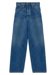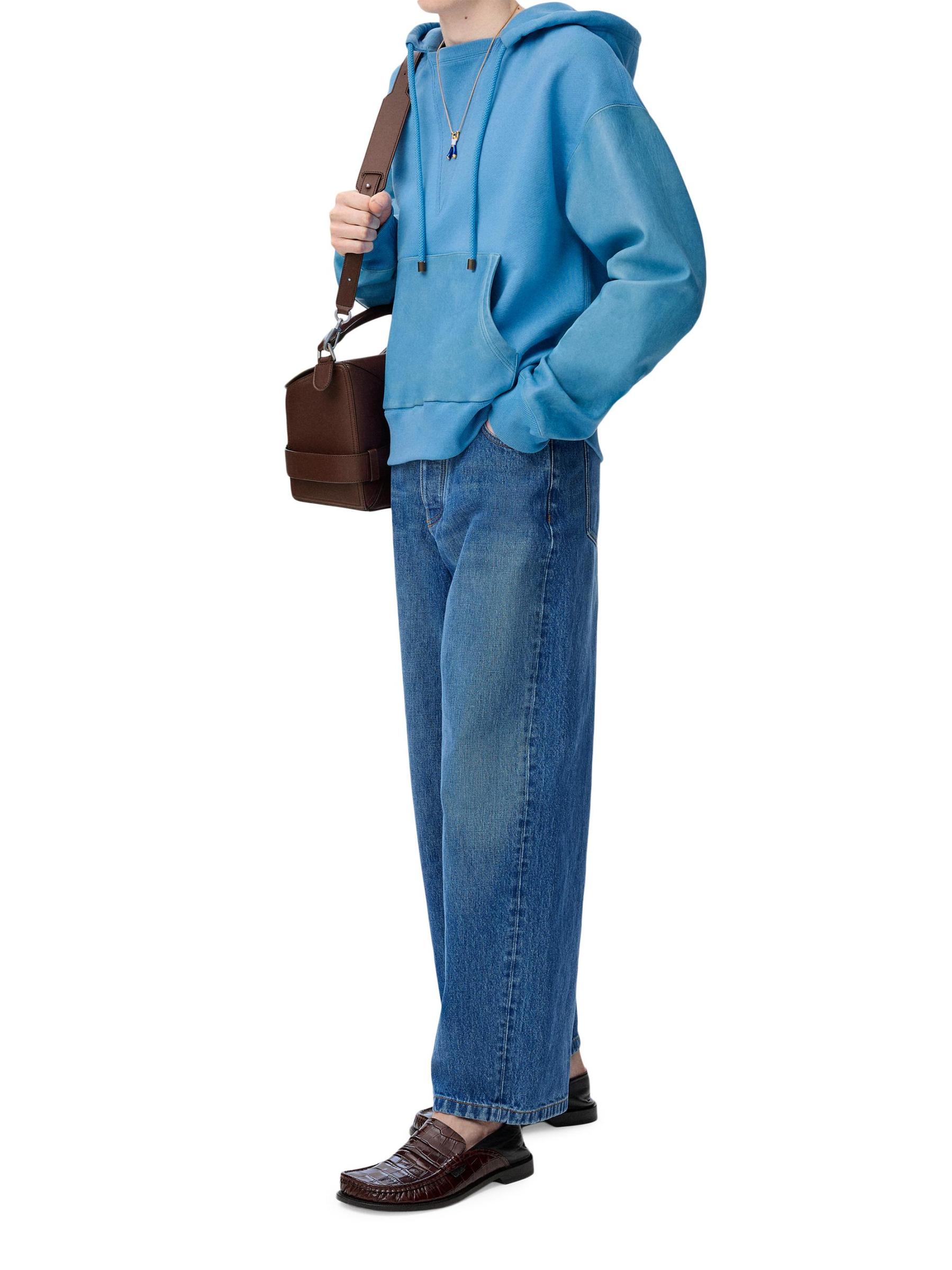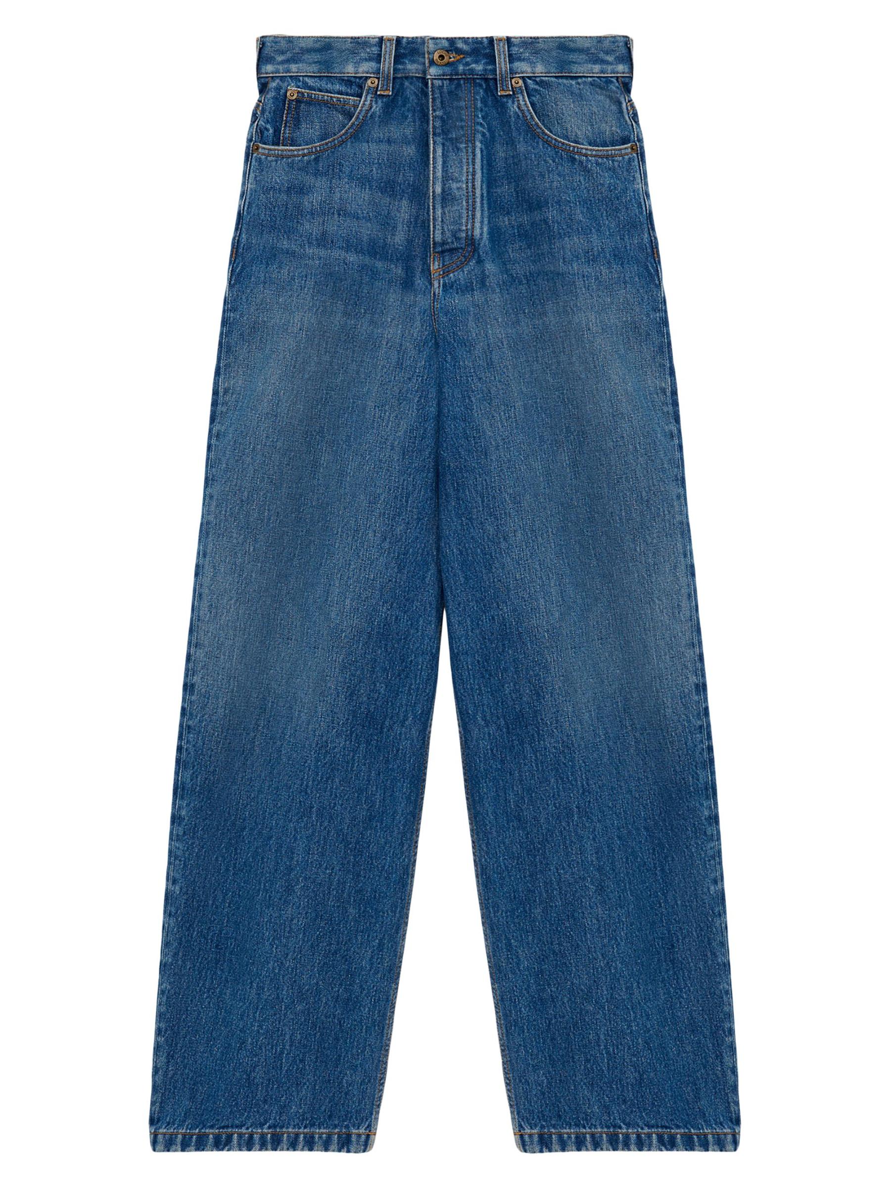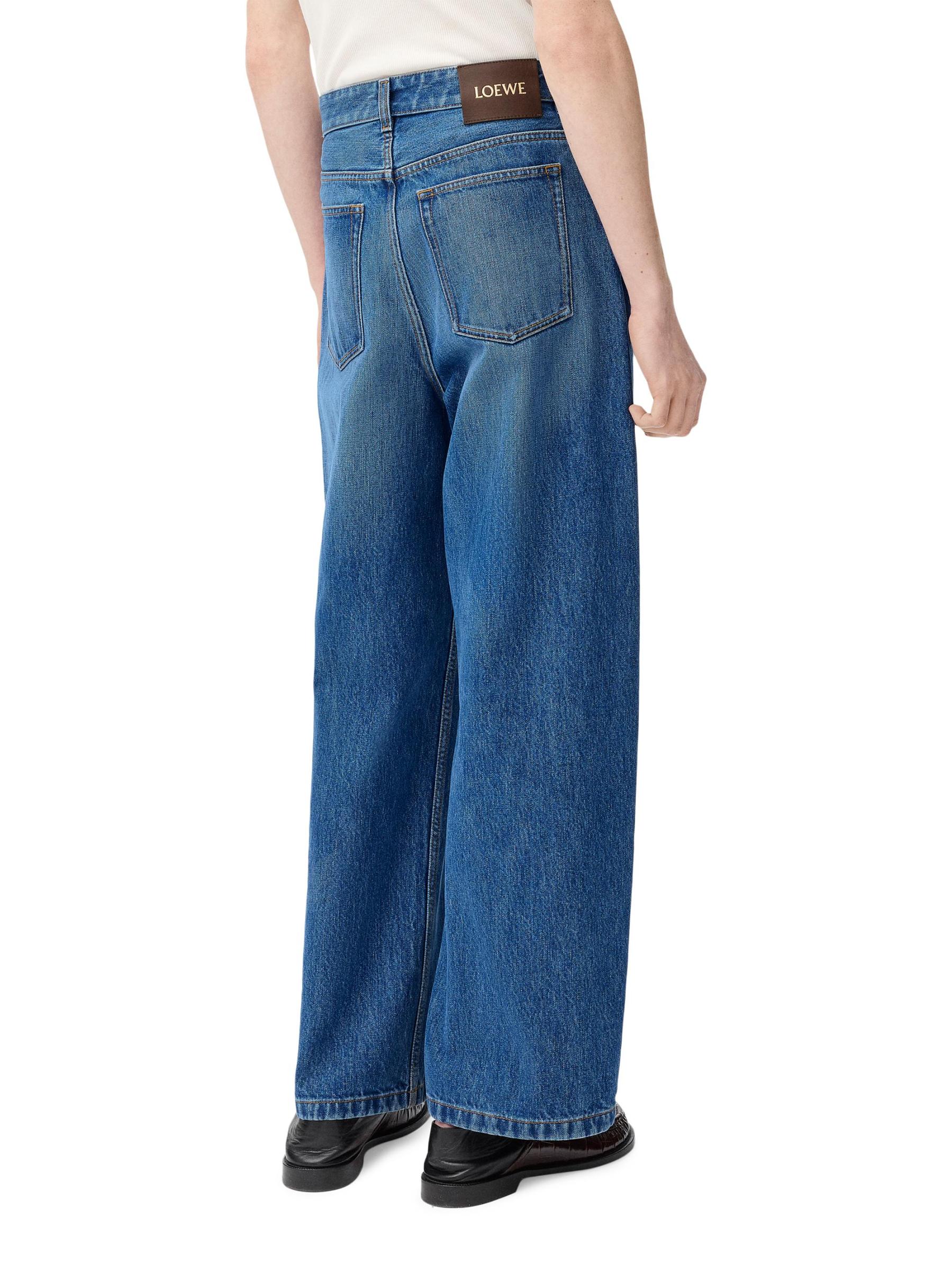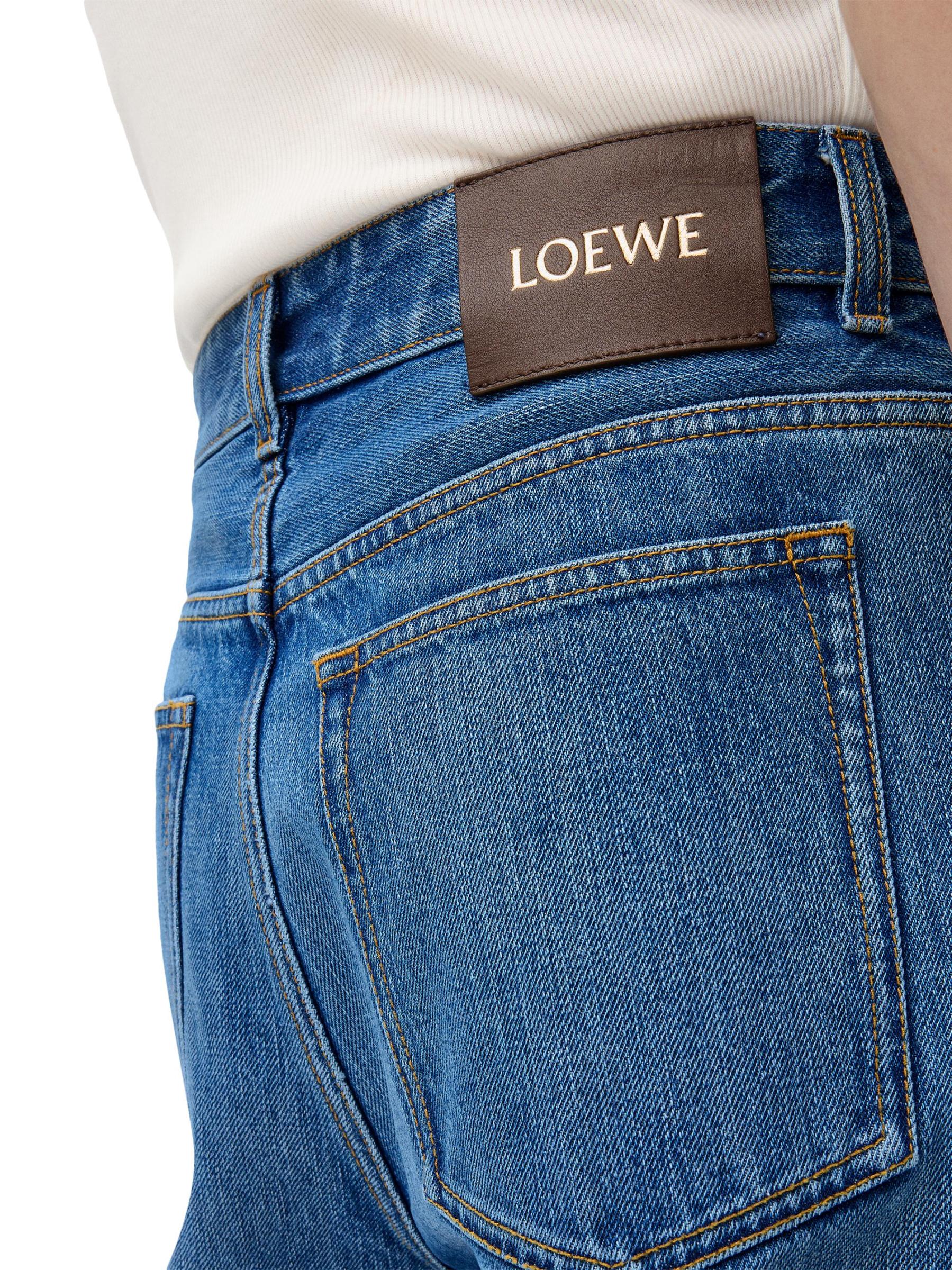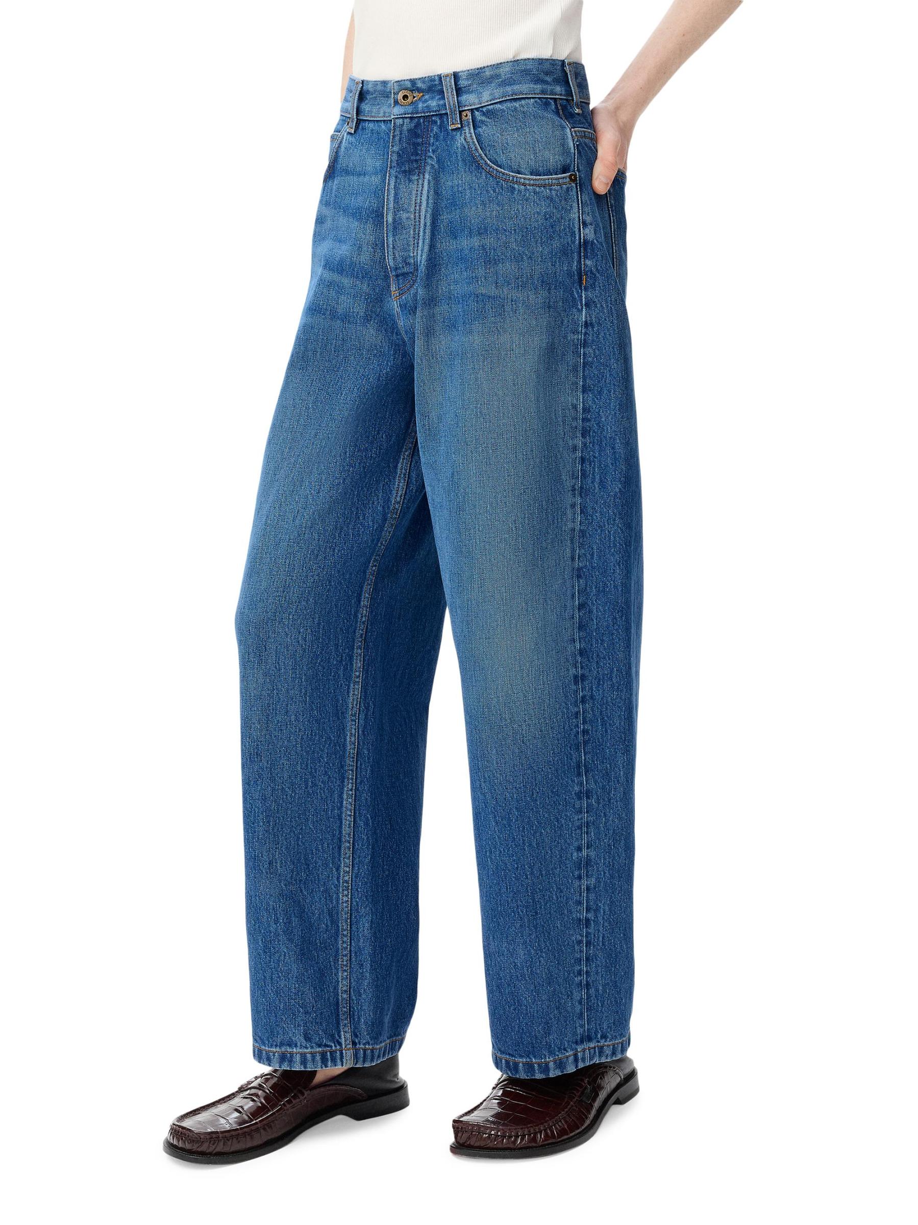 تتميّز سراويل الجينز البرميلية من LOEWE، المصنوعة من مزيج القطن، بتصميمها الداكن والخفيف بخمسة جيوب.
