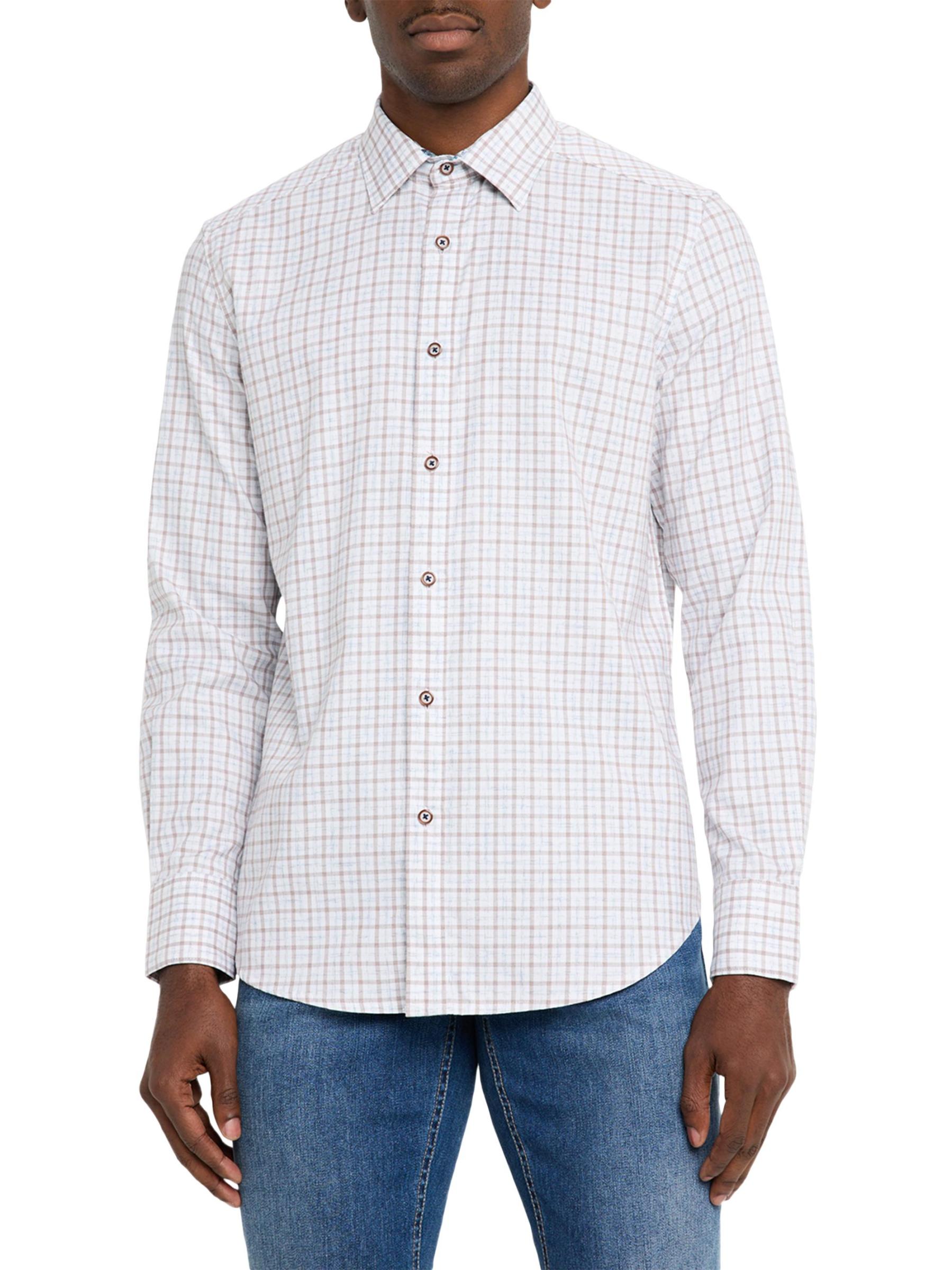 يتميز قميص Darrington ذو المربعات الصغيرة من Robert Graham، المصنوع من القطن المصبوغ بالخيوط المحايدة، بمظهر جيد التهوية ومصقول.