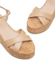 تم تصميم صندل Dayna Wedge من Stuart Weitzman بمقدمة مفتوحة وإغلاق بإبزيم آمن. هذه الأوتاد المصنوعة من الجلد مثبتة على منصة من الفلين المصقول.