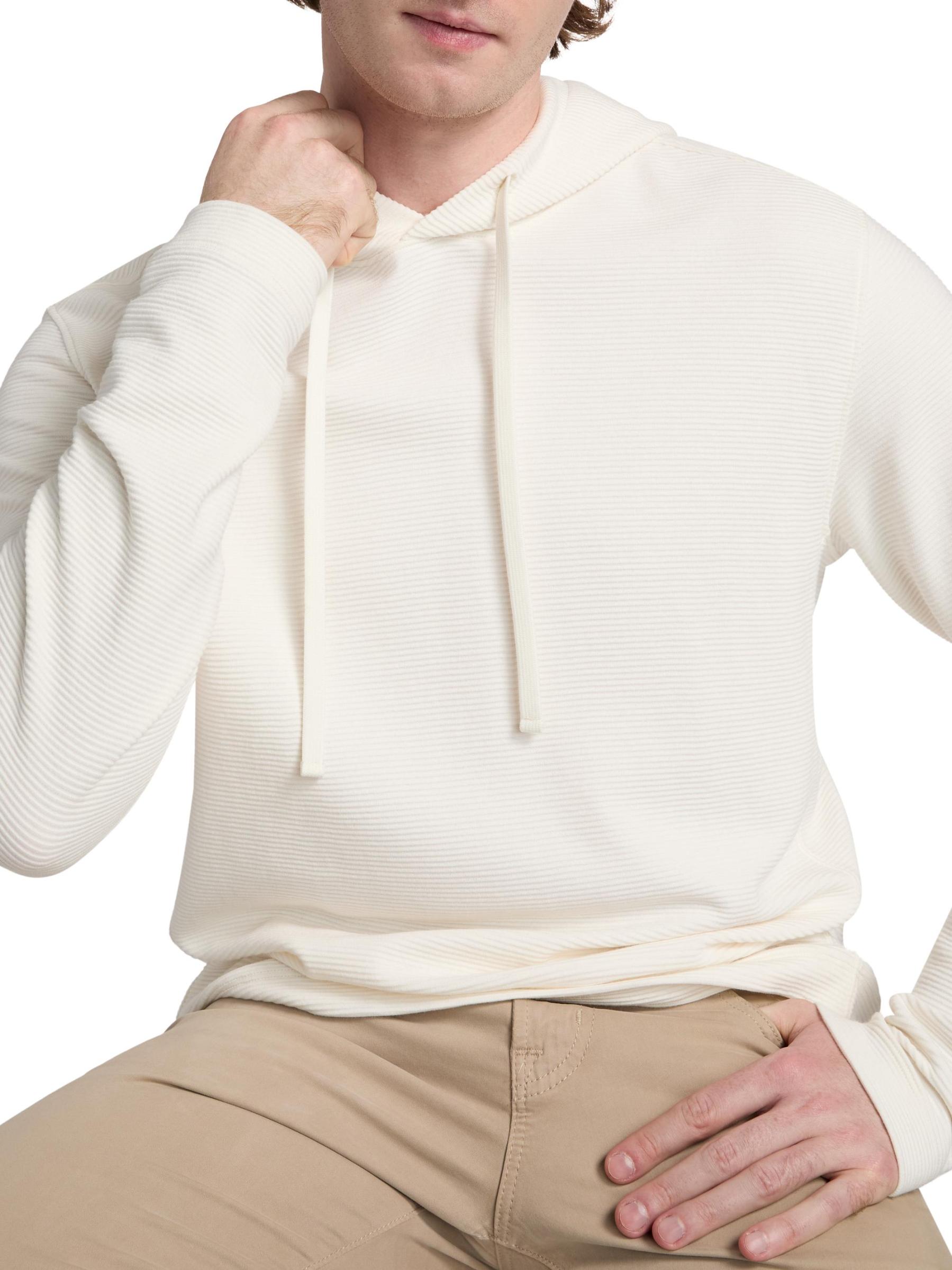 تم تصميم هودي ديلروي من Theory المصنوع من مزيج القطن مع تصميم مخطط من الجاكار وقلنسوة برباط.قلنسوة أكمام طويلة تسحب 50% قطن/ 50% مودال يُغسل في الغسالة مستوردة