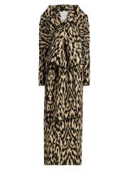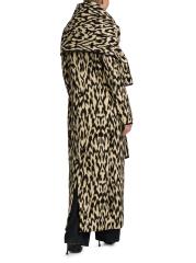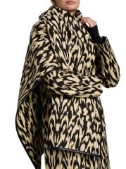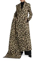 معطف ديمي من براندون ماكسويل مصنوع من مزيج من الصوف الإيطالي البكر بطبعة تجريدية. يُزيّن هذا التصميم مزدوج الصدر بياقة على شكل شال ووشاح قابل للإزالة وزخرفة متباينة من الجلد الصناعي.