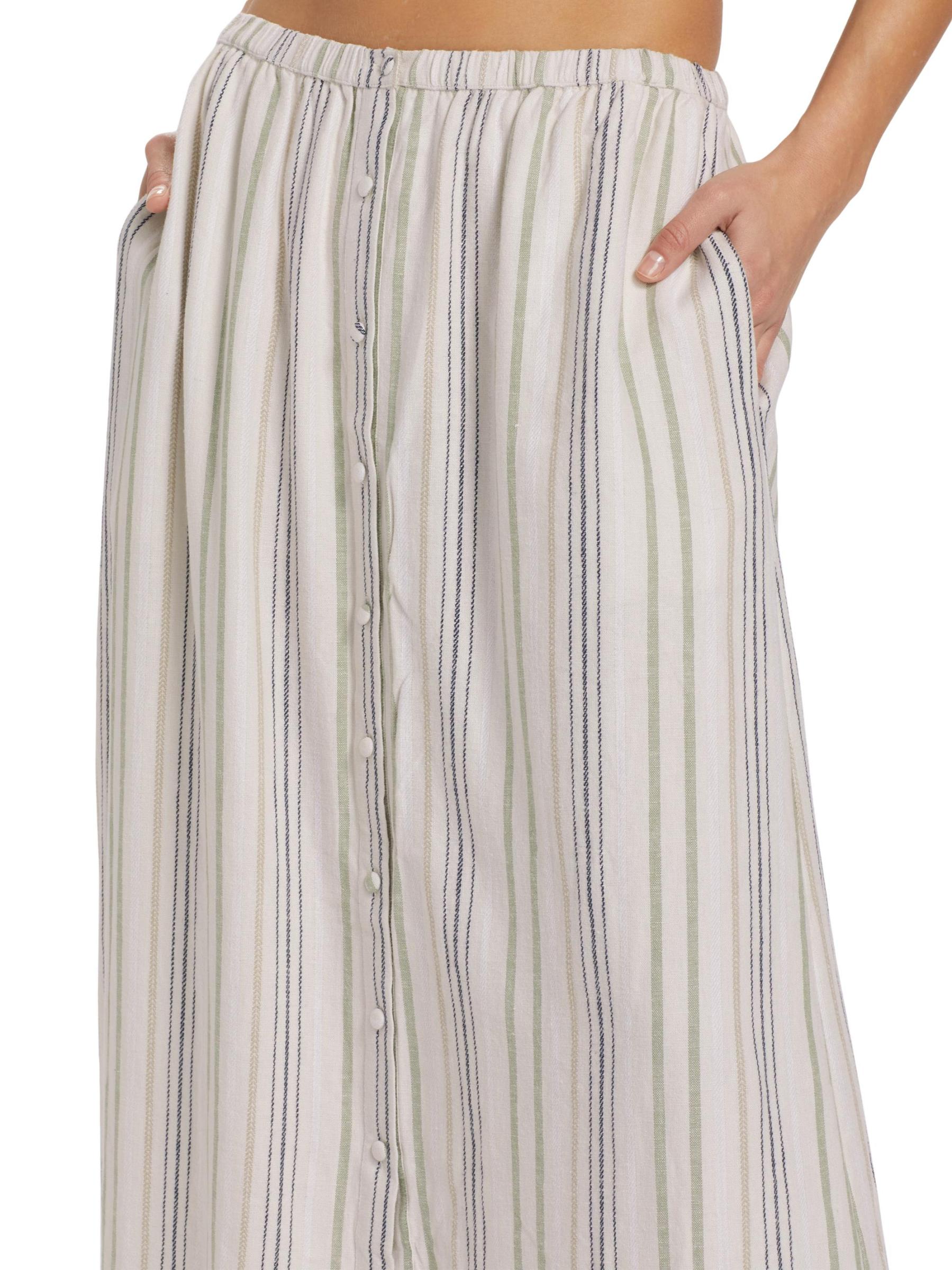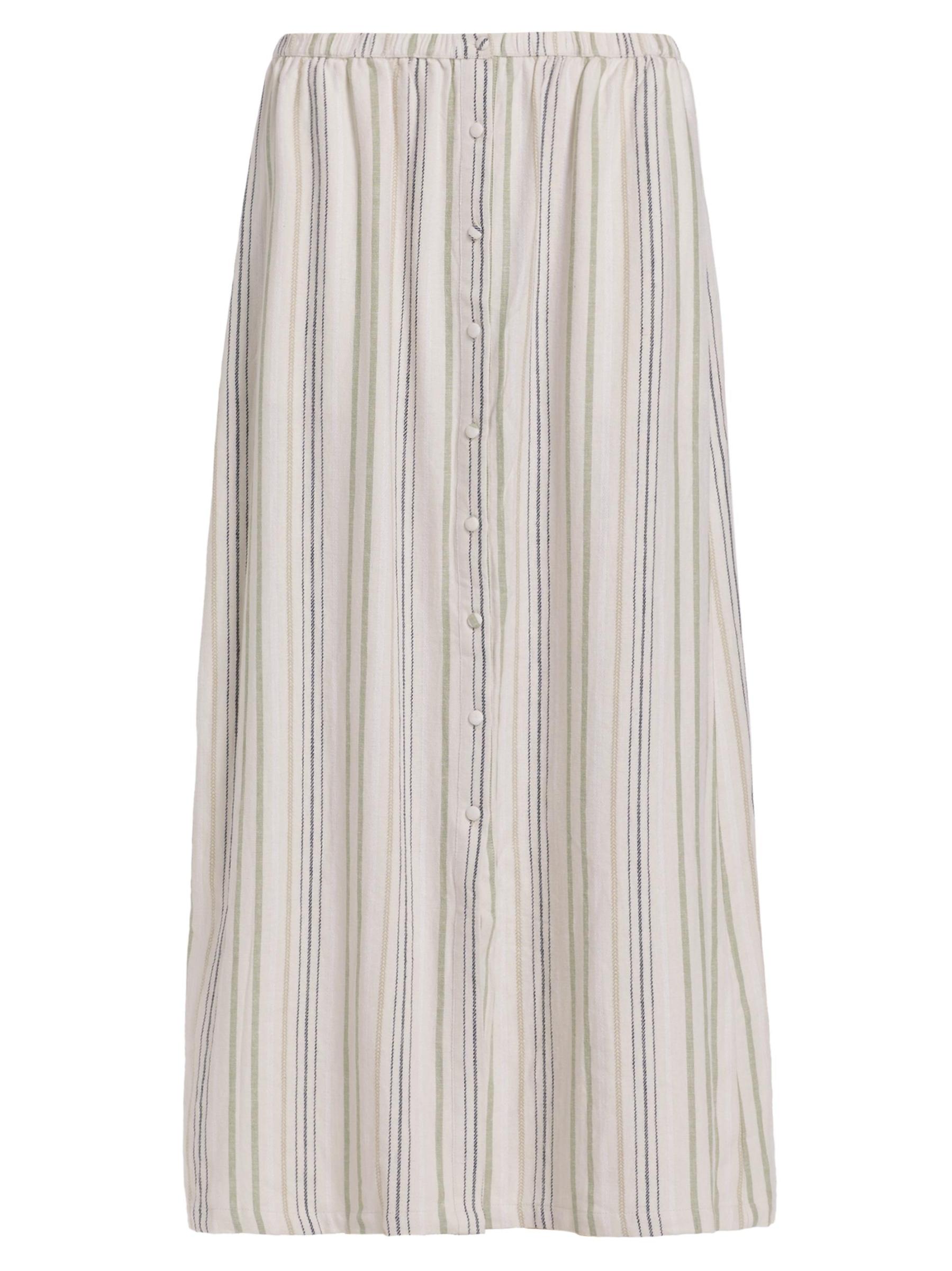 تم تصميم تنورة Demi من Splendid المصنوعة من مزيج الكتان المخطط مع حزام خصر مطاطي وجيوب جانبية منزلقة وإغلاق بأزرار أمامية.