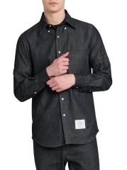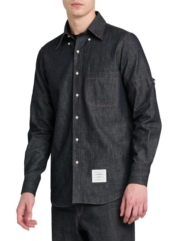يتميز قميص Thom Browne المصنوع من الدنيم بياقة بأزرار وأكمام طويلة وحافة على شكل ذيل القميص. هذه القطعة كاملة بجيب على الصدر وشعار في الأمام.ياقة بأزرار أكمام طويلة وأساور أسطوانية جيب خارجي على الصدر فتحة أمامية بأزرار قطن بنسبة 100% تنظيف جاف صُنع في إيطاليا