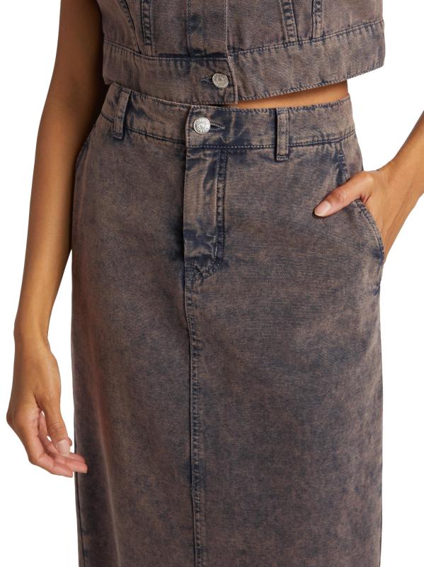 تتميّز تنورة موسكينو جينز المصنوعة من القطن بطول متوسط وقصّة مستقيمة. تم تصميم هذه القطعة بجيوب جانبية منزلقة تتجمع في الخلف وسحّاب لإطلالة كلاسيكية.حلقات الحزام جيوب جانبية منزلقة جيب خلفي سحّاب، زر للإغلاق قطن بنسبة 100% يُغسل في الغسالة مستوردة