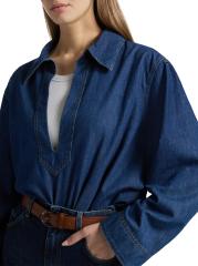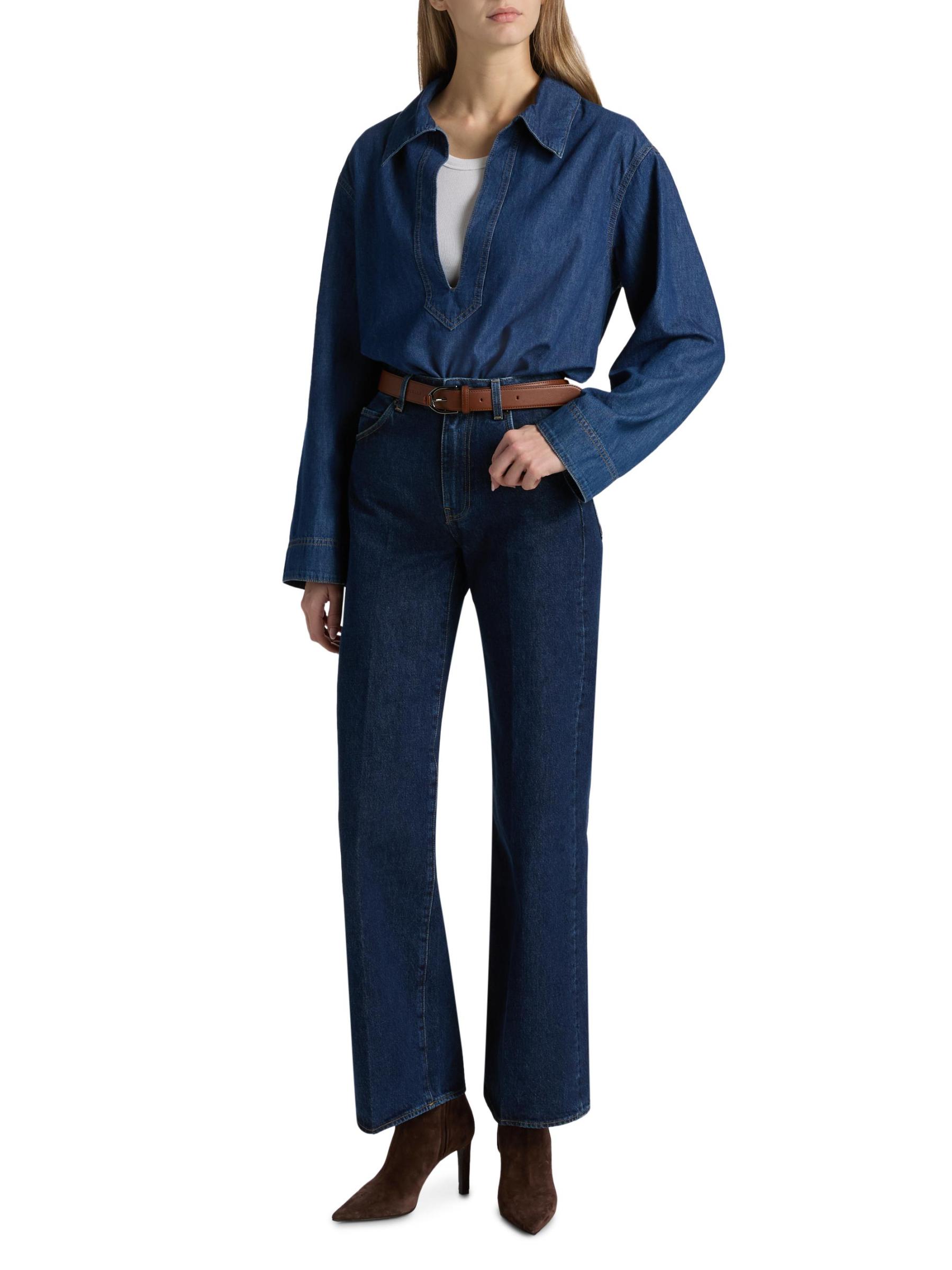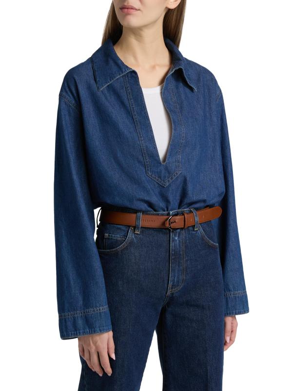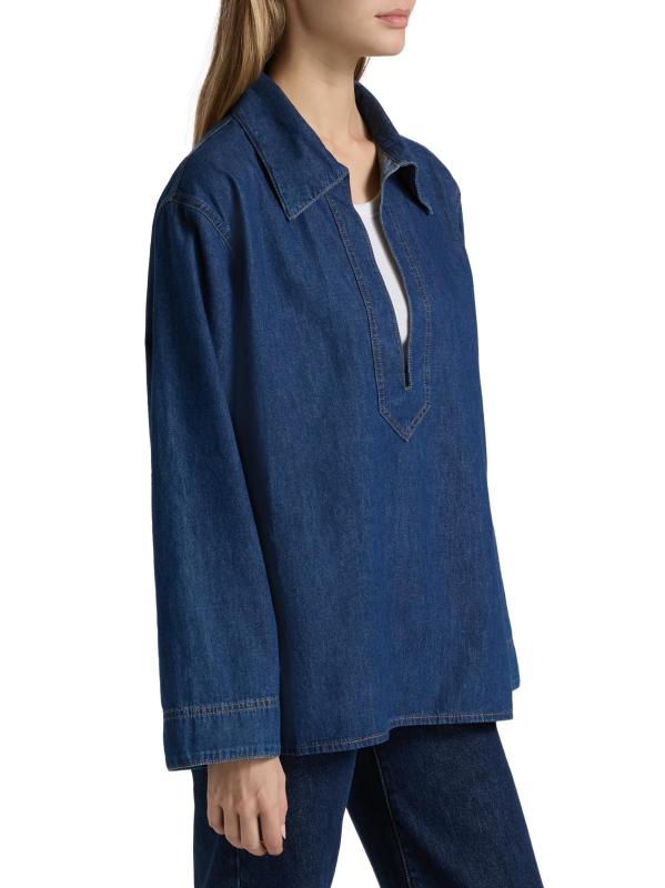 صُنعت هذه البلوزة القصيرة من BLK DNM من الدنيم القطني، وهي مصممة بياقة جوني لإطلالة مريحة.