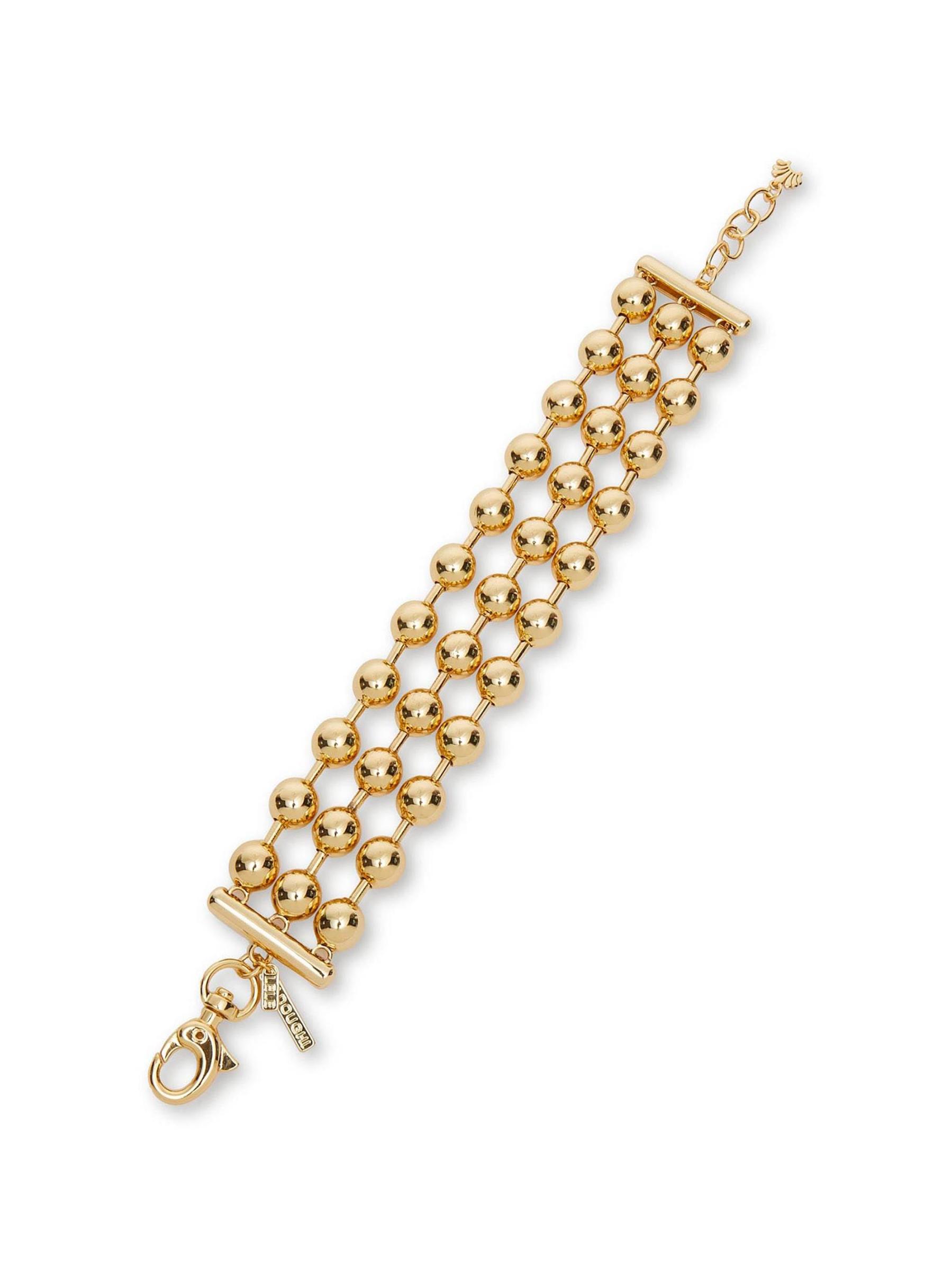 يتميز سوار ديانا من Lele Sadoughi بثلاثة صفوف من الخرز المطلي بالذهب عيار 14 قيراطًا والمثبت بقضيبين مصقولين.نحاس مطلي بالذهب عيار 14 قيراط مشبك لوبستر مستوردة