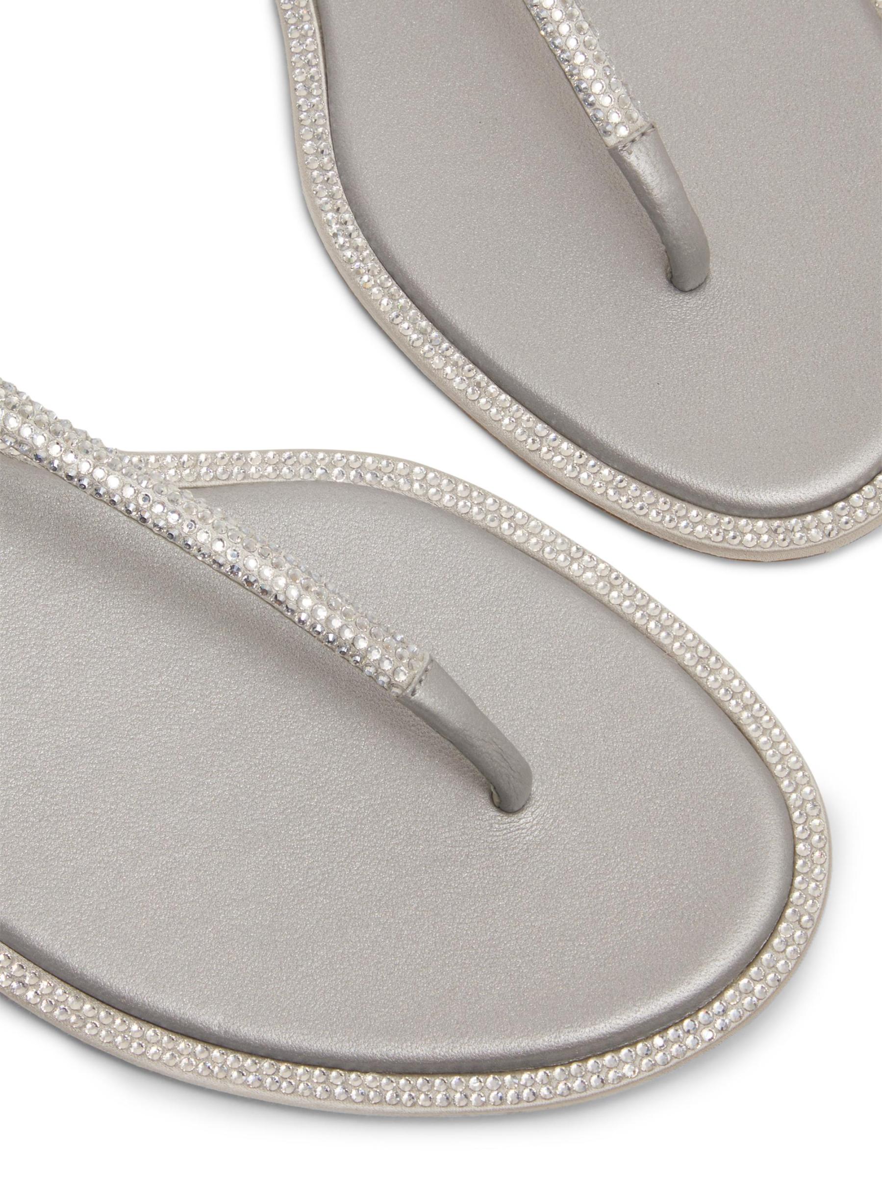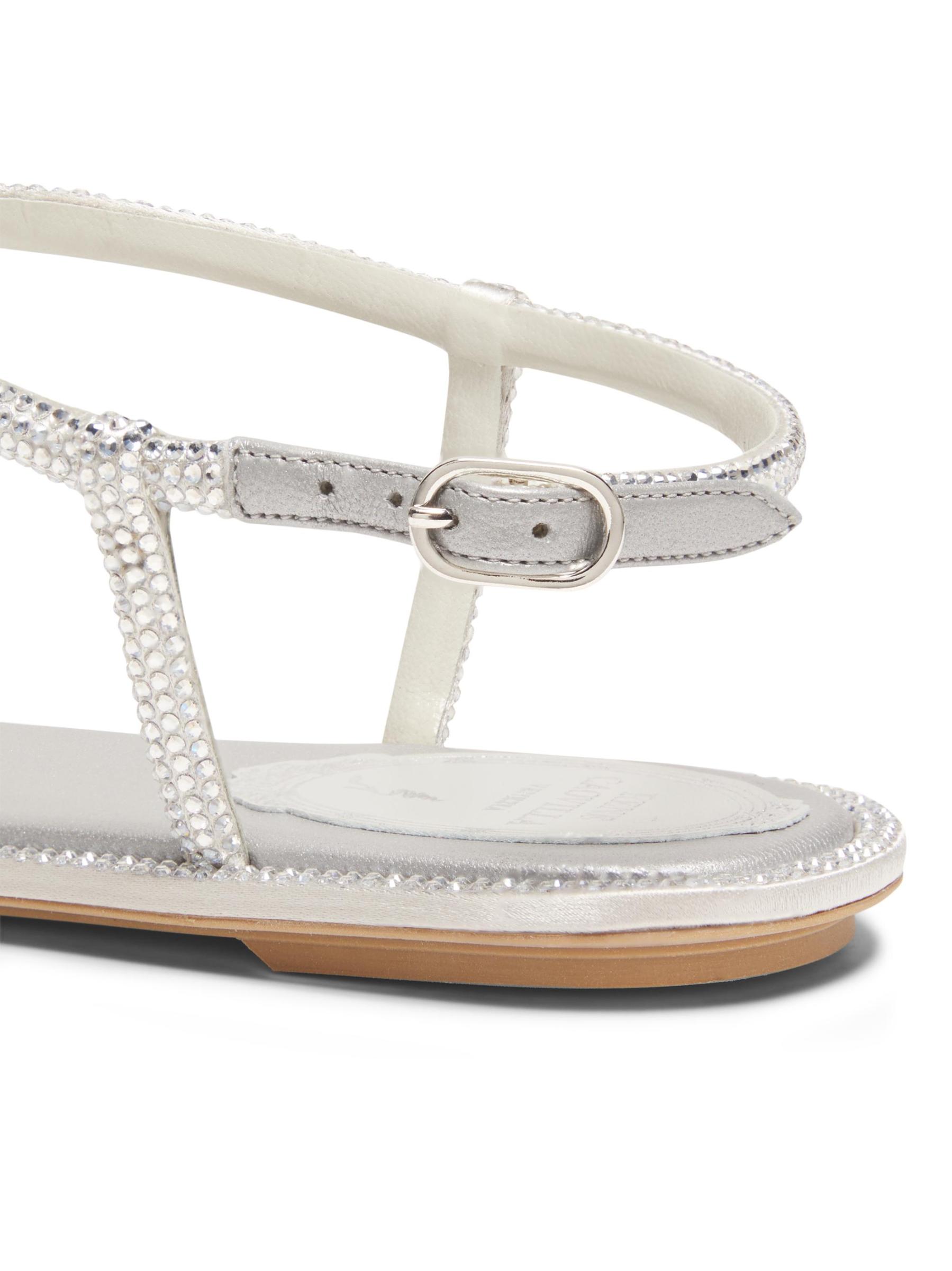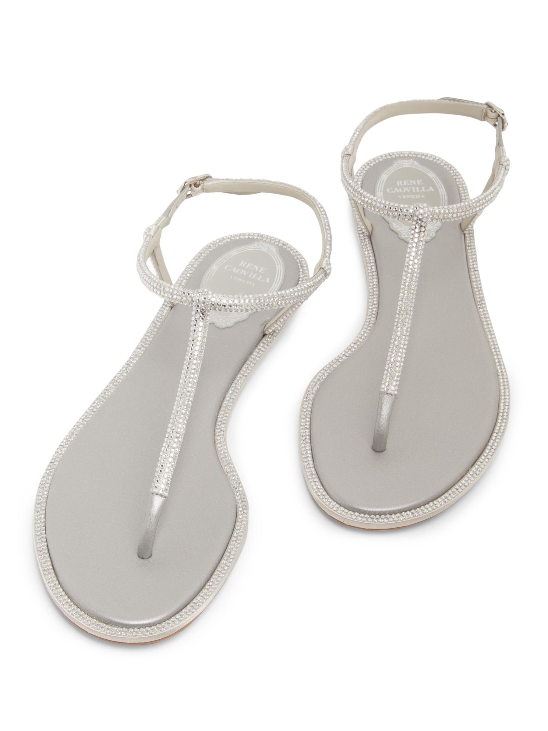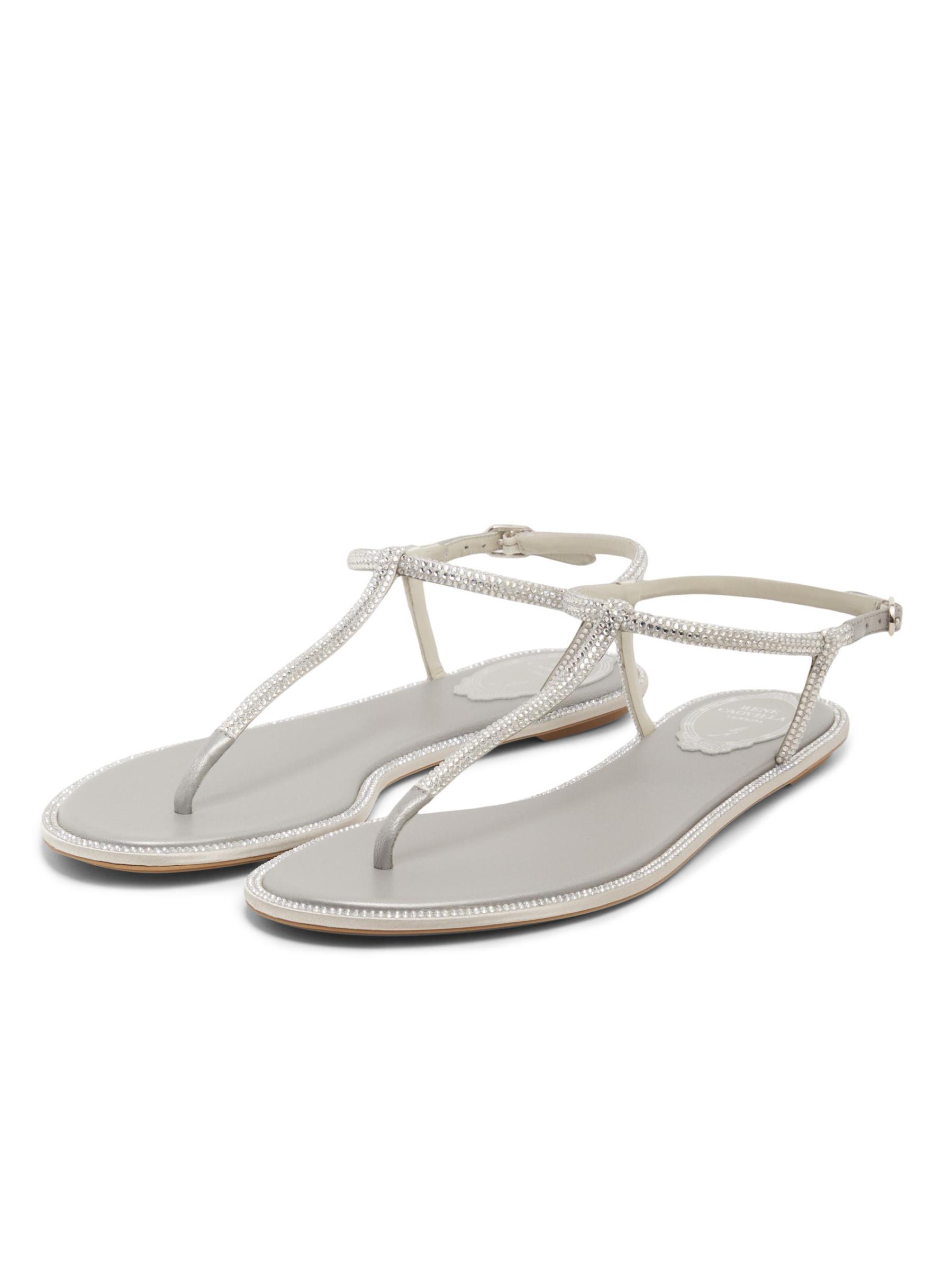 صُنع صندل ديانا المسطح من Rene Caovilla في إيطاليا من الساتان ويتميز بحزام مزين بالكريستال.
